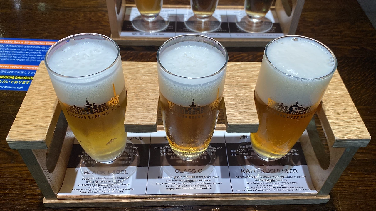왼쪽부터 삿포로 블랙 라벨, 클래식, 그리고 카이타쿠시 맥주.