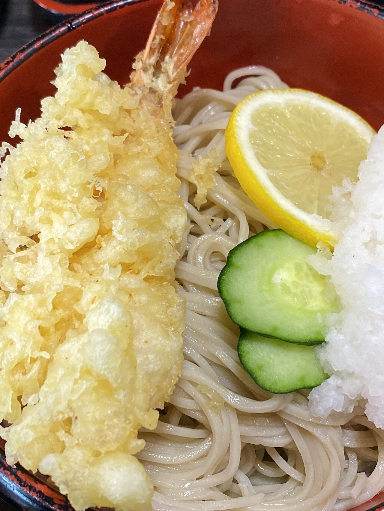 튀김이 탱글 하게 살아있는 텐푸라 소바. 오로시(갈은 무)는 생선구이나 어디 곁들여도 맛있다.