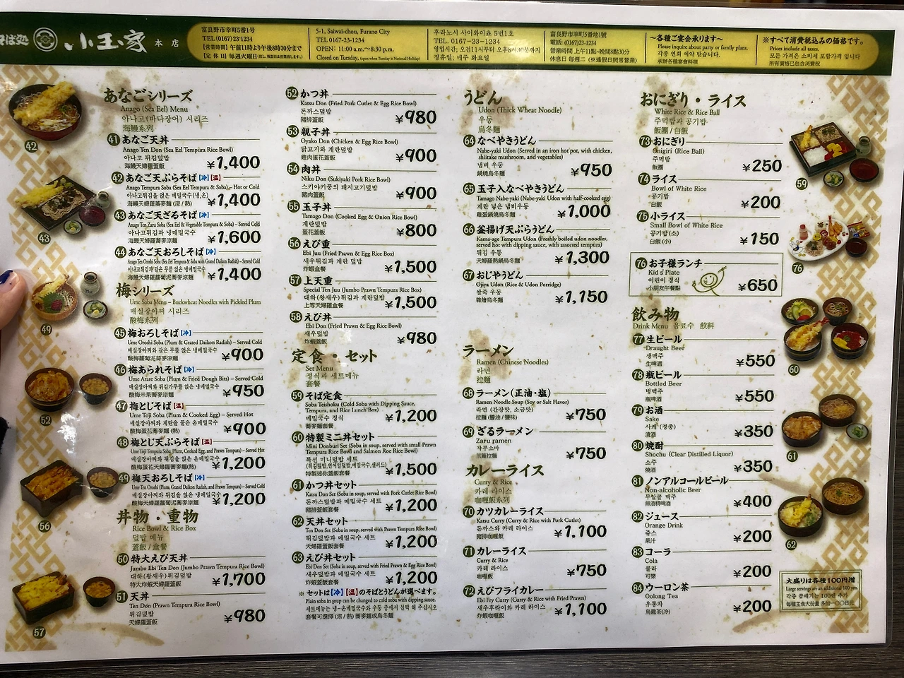 한글과 영어로 설명되어 있는 외국인 메뉴. 소바뿐만 아니라 온갖 메뉴가 있다.