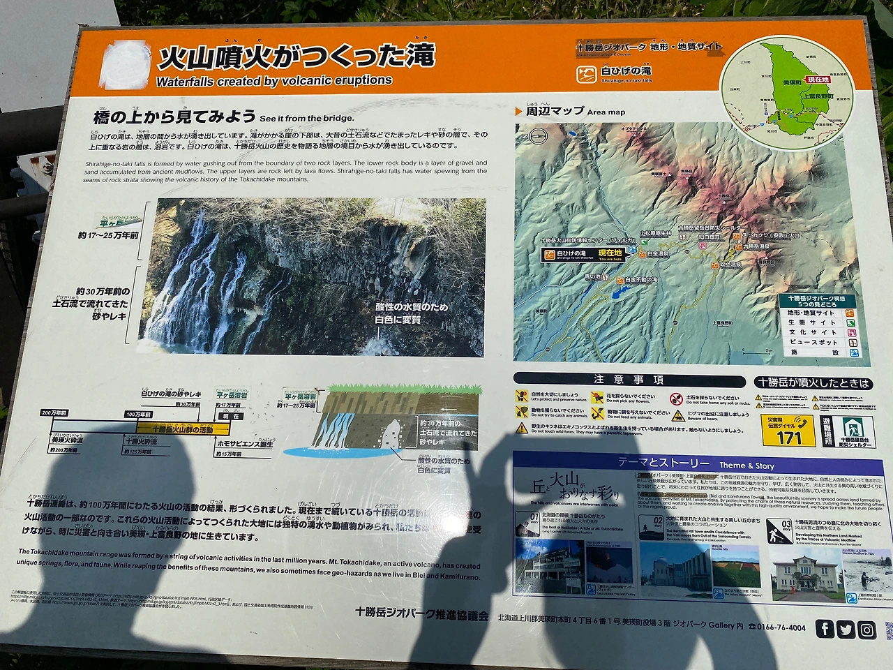 화산폭발로 인해 자연적으로 생겨난 특이한 흰색 모양으로 흰 수염 폭포라는 이름이 붙었다.