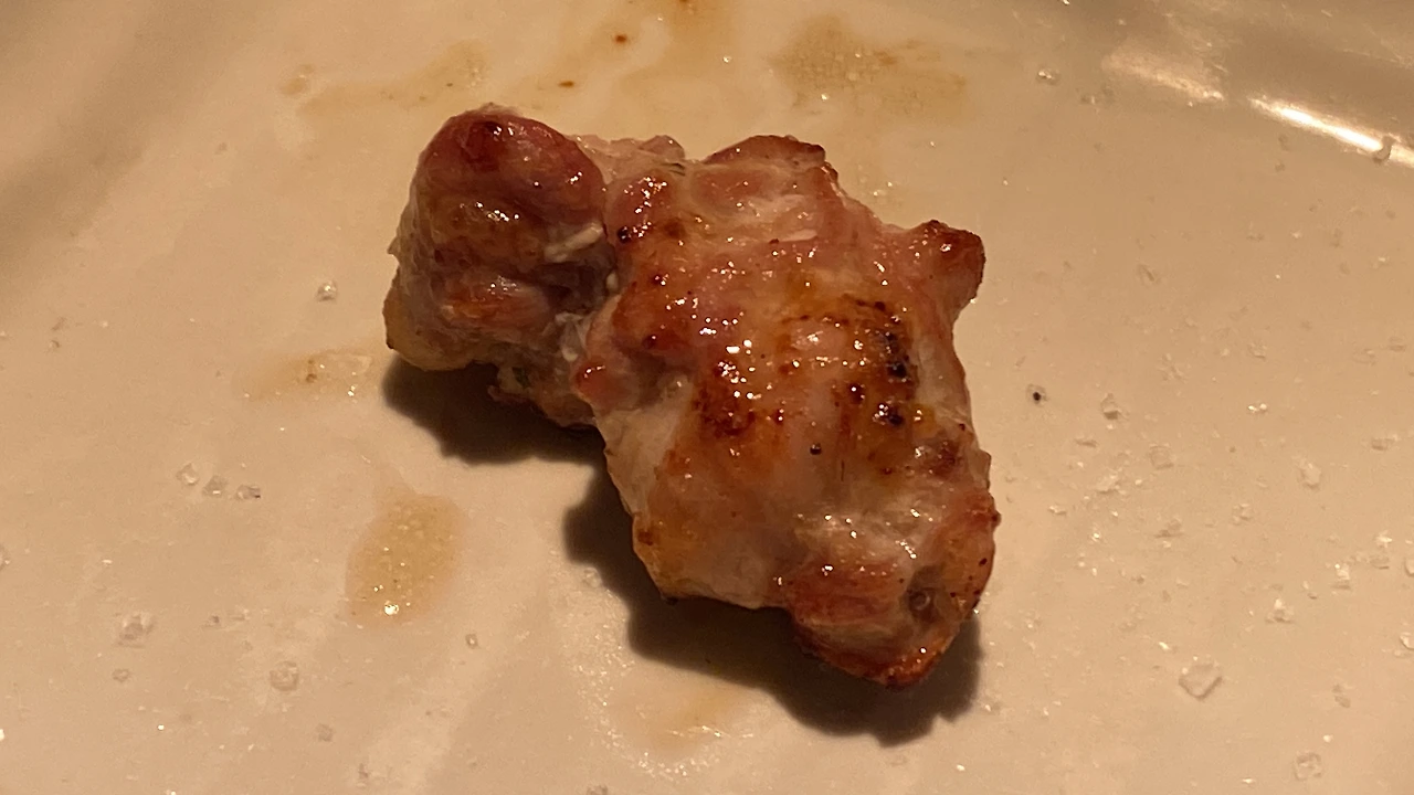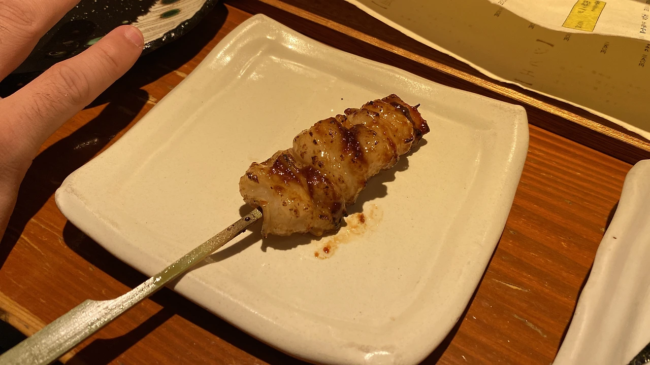 야키토리 집마다 자기 스타일의 츠쿠네가 있는데, 어떤 집은 그냥 고기만 먹는 것도 좋지만 츠쿠네가 시그니처 메뉴로 자리 잡을 정도로 츠쿠네는 가게마다 다른 레시피와 매력을 갖고 있다. 파, 양파, 마늘 등의 야채가 들어가기도 하고 타레라는 일본식 소스를 각집마다 개발해서 찍어먹거나 애초에 발라서 나오기 때문에 단순한 메뉴 같아도 은근히 변주가 있다. 이곳의 츠쿠네는 양념 발려서 나오지 않아서 더욱 본연의 닭고기의 고소함과 기름진 맛이 돋보이는 맛.