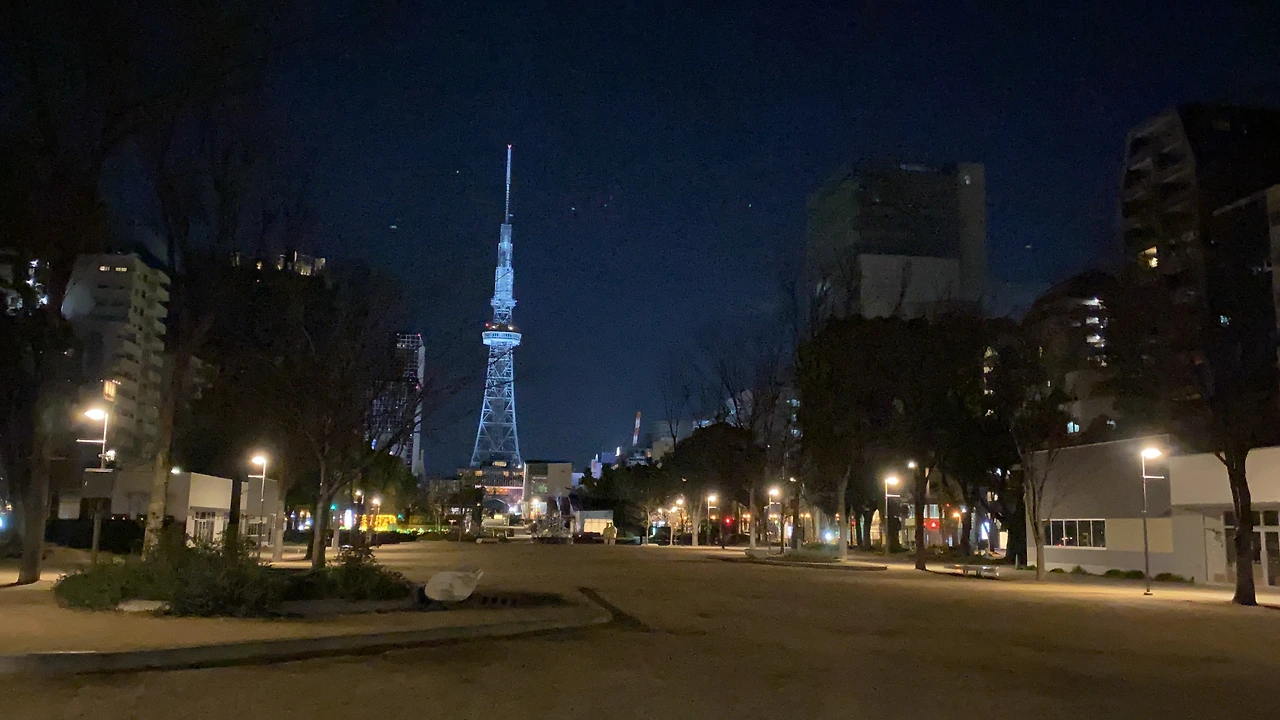 나고야 시내의 히사야오도리 공원에서 보이는 미라이타워. 뭔가 유럽 같은 분위기.