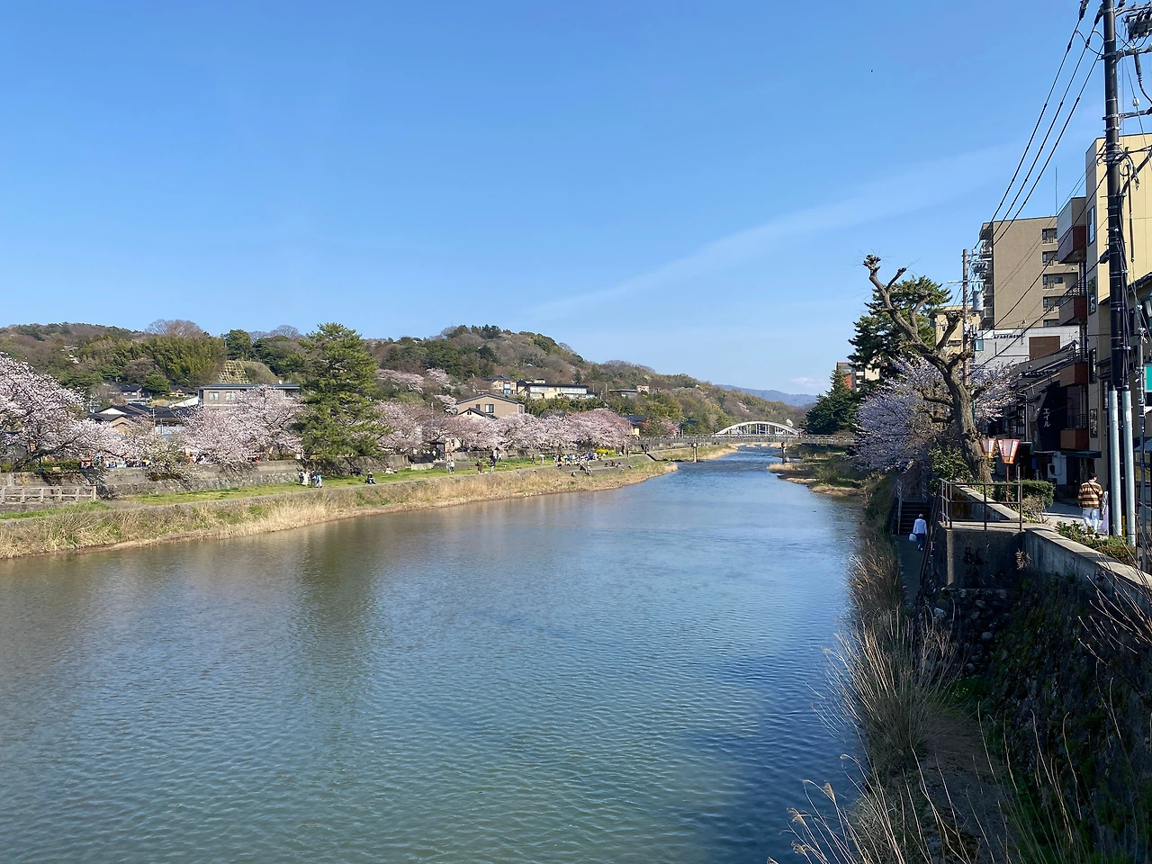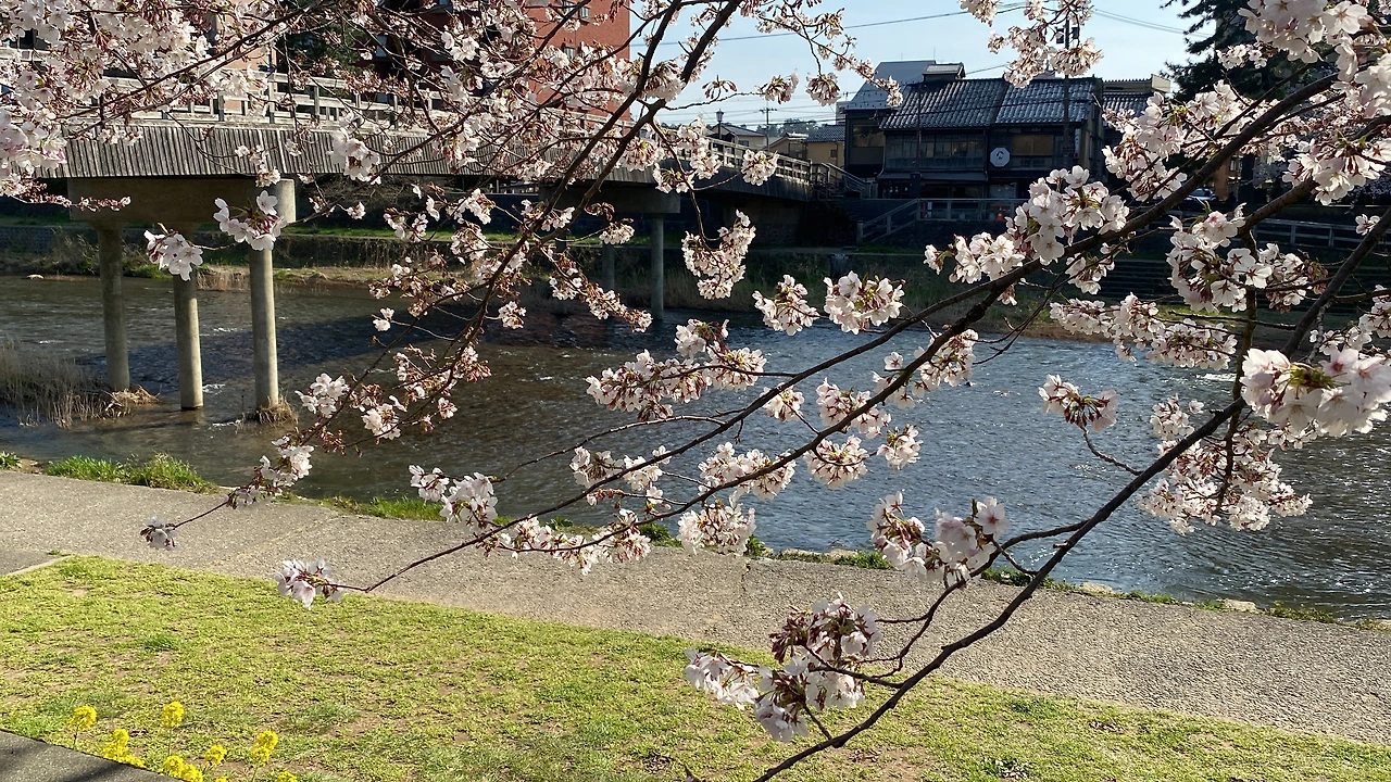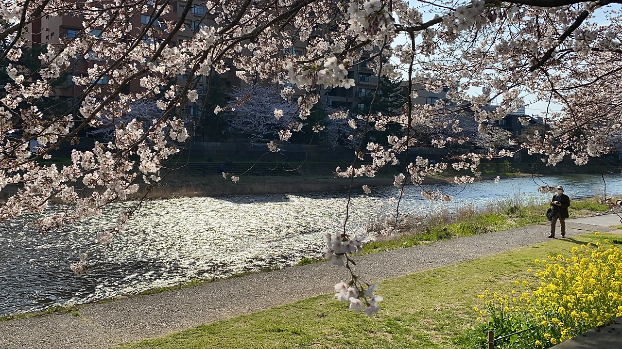 히가시차야 근처의 강가에도 벚꽃이 줄지어 피어있다.