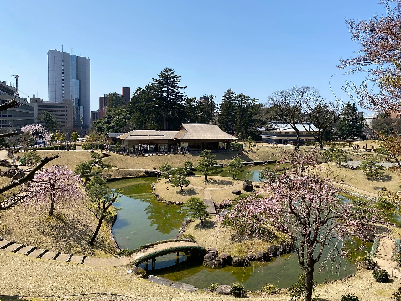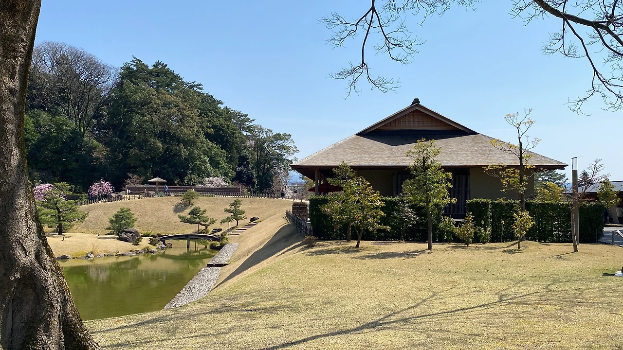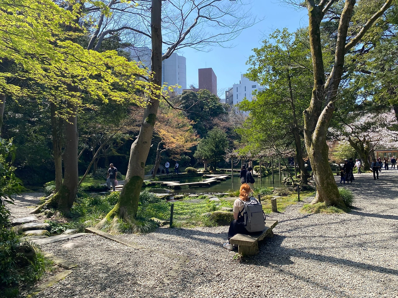 가나자와성 안에는 가쿠신엔이라는 연못 공원이 있는데, 연못에 세 개의 섬이 앙증맞은 다리로 연결된 형태다.
