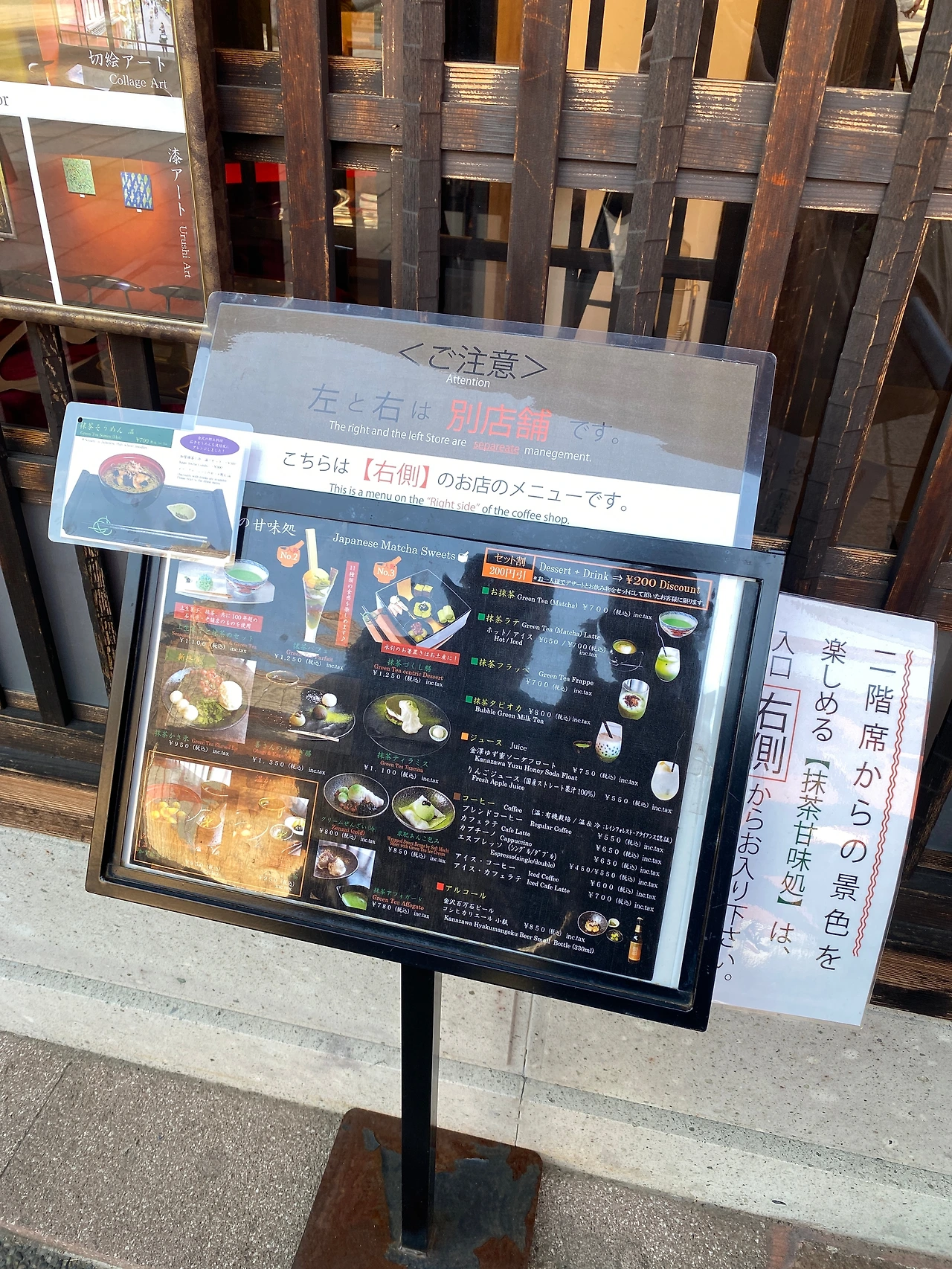 현대적인 디저트인 파르페 등을 일본 전통적인 식자재인 말차 등과 결합한 디저트 카페 등도 많다. 거리에 붙어있던 포스터에 따르면 계절마다 게이샤 퍼포먼스도 진행하는 듯하다.