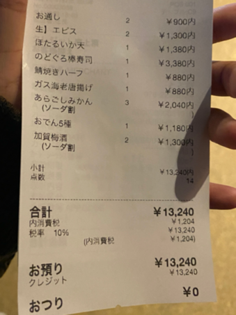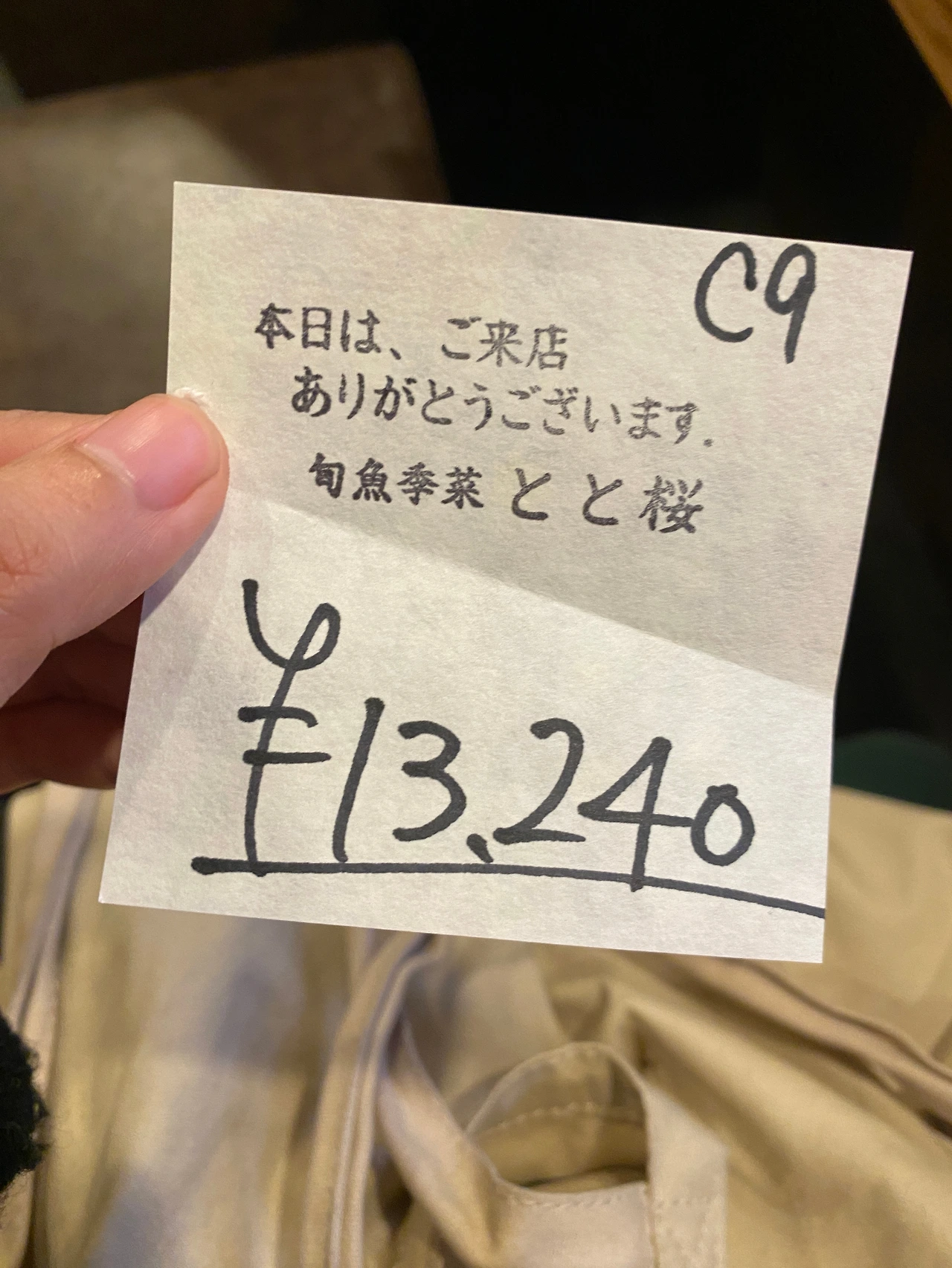저녁 총비용은 13,240엔으로, 신선한 제철 해산물과 술을 양껏 마신 두 사람의 식사로는 적당한 가격이었다. 이렇게 하나하나 그 지역이기에, 그 시기이기에 맛볼 수 있는 것들을 먹는 건 꽤나 즐거운 일이다.