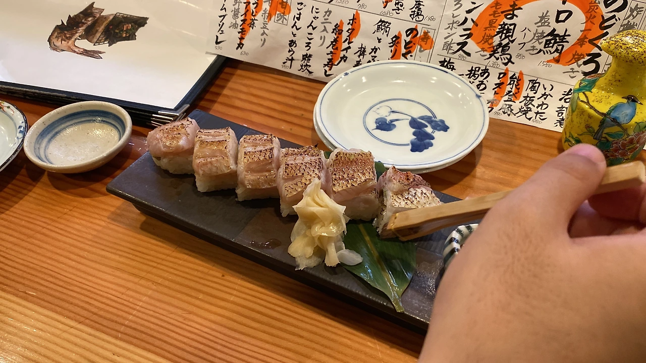 워낙 달고 기름진 생선이다. 한 접시에 3380엔이지만, 그만한 가치가 있는 초럭셔리 메뉴였다. 아마도 노도구로를 보우즈시로 먹을 수 있는 기회는 이제 별로 없지 않을까? 그동안 일본에서 수많은 해산물 이자카야를 갔지만 노도구로는 거의 소금구이 방식으로만 제공되는 것 같다.