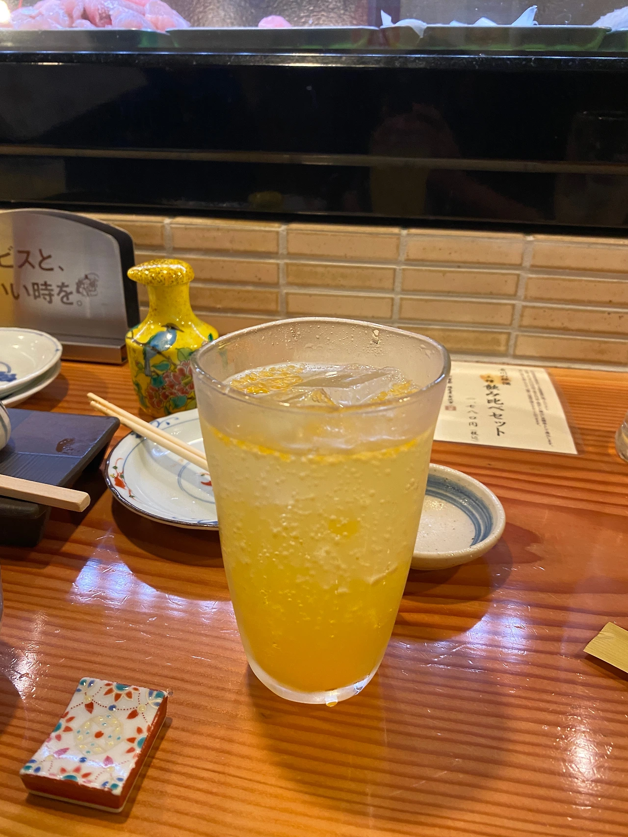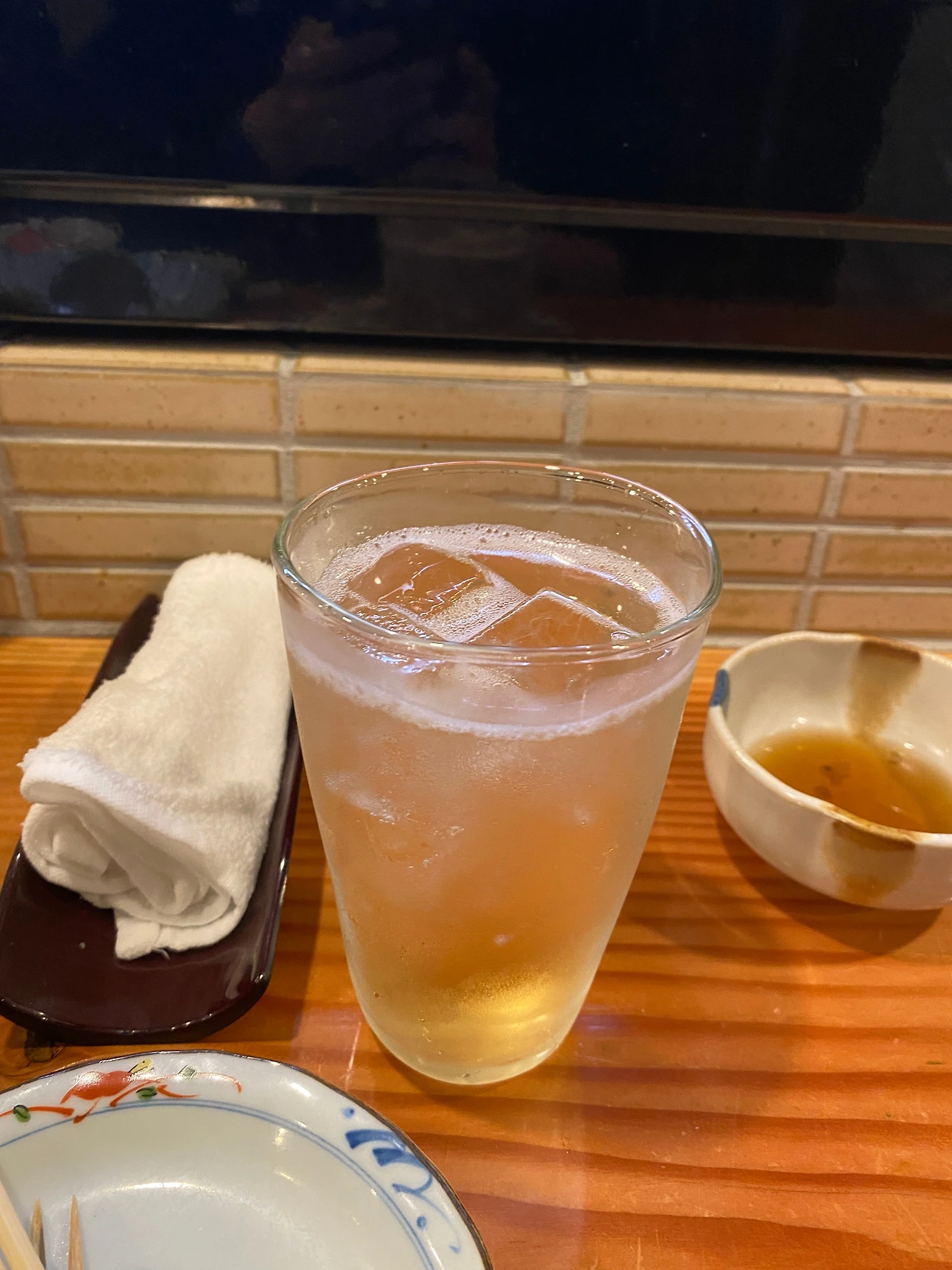 우메슈(매실주)를 탄산에 탄 우메슈 소다와리. 이것도 평소 이자카야에서 마지막 즘에 조화주 겸 즐겨 마신다. 혹시 일본 여행에서 아직 안 마셔봤다면 식사 마무리 식후주로 추천한다.