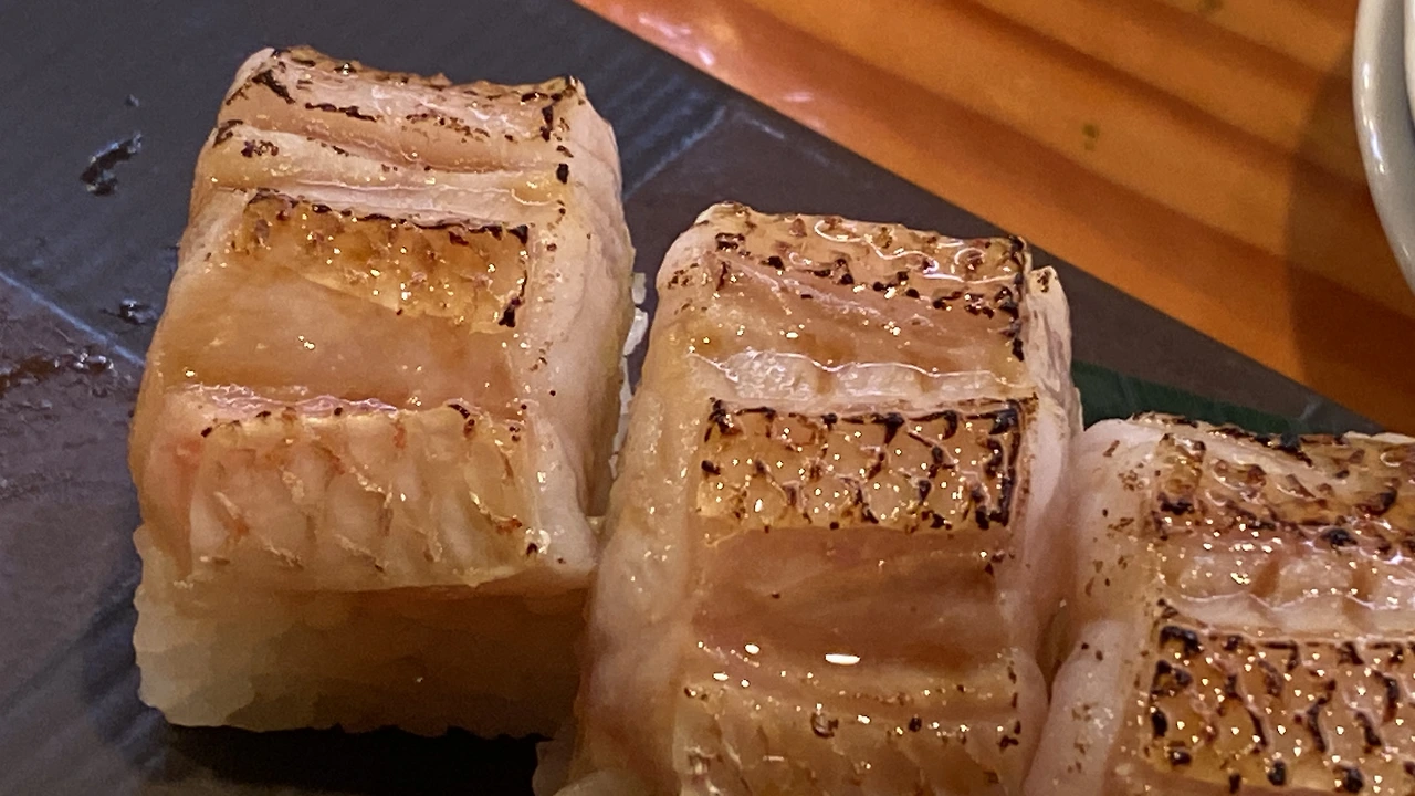 노도구로는 일본에서도 아주 귀한 생선이라 더욱 특별한데, 이곳에서는 그 노도구로를 숯불에 살짝 구워 초밥으로 만들었다. 곁들여진 생강과 함께 한 입 먹으면, 고소한 기름이 입안에 퍼지면서 사르르 녹는 그 느낌이 정말 환상적이다.