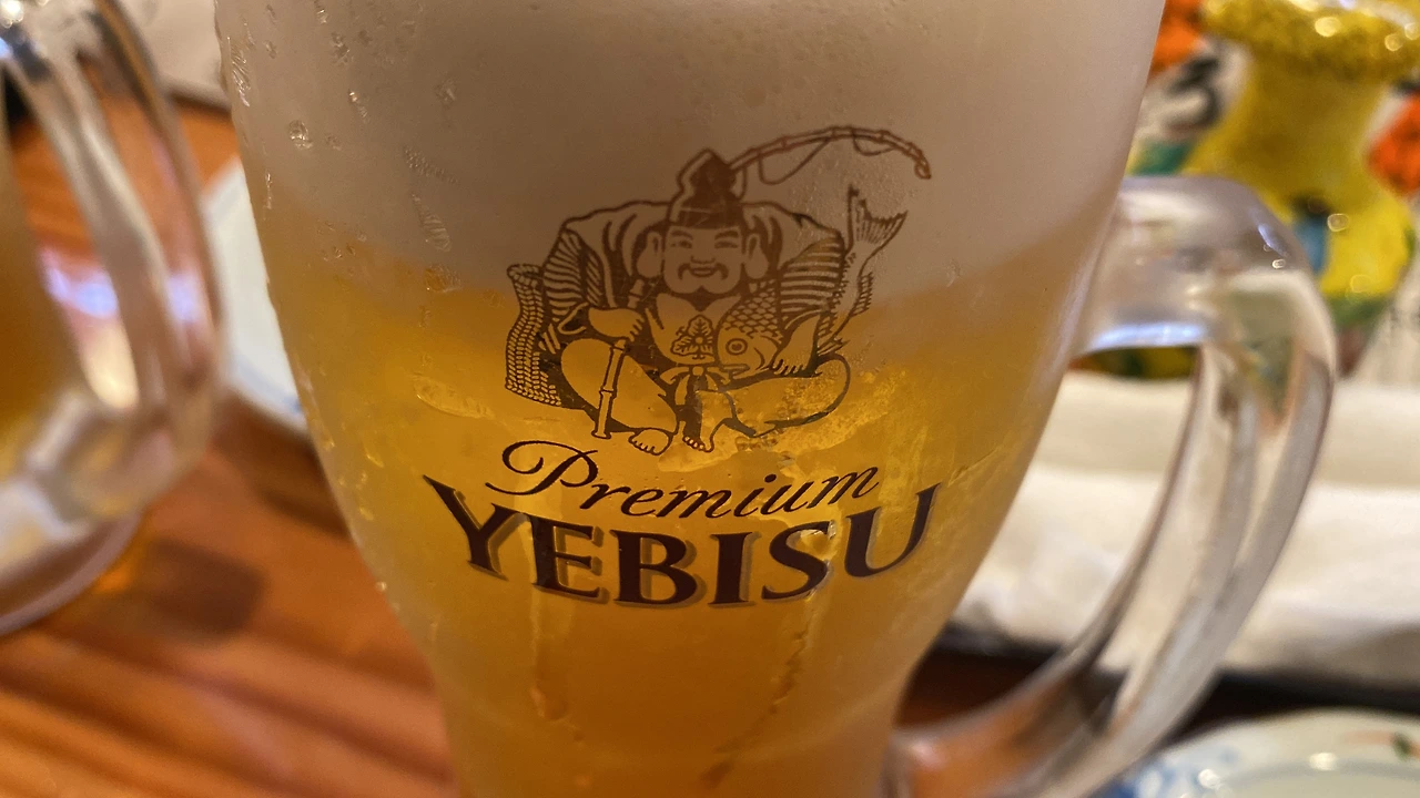 일단 앉자마자 시킨 生ビール 에비스 생맥주 두 잔. 부드러운 맛 최고! 각 ¥650.