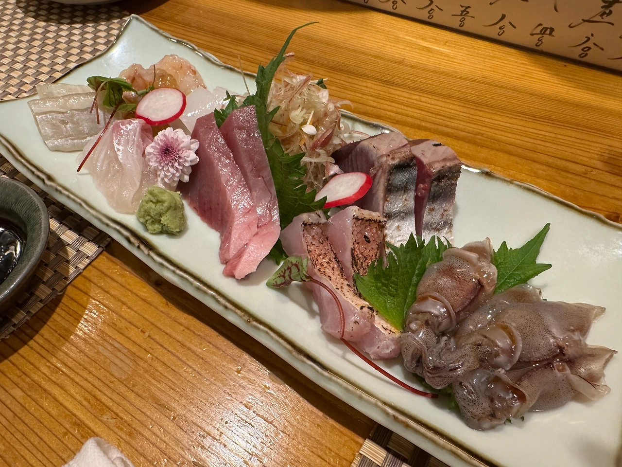 - カツオ(카츠오): 가다랑어. 살짝 익혀서 붉은살 특유의 철분감을 부드럽게 해서 매력을 극대화했다.