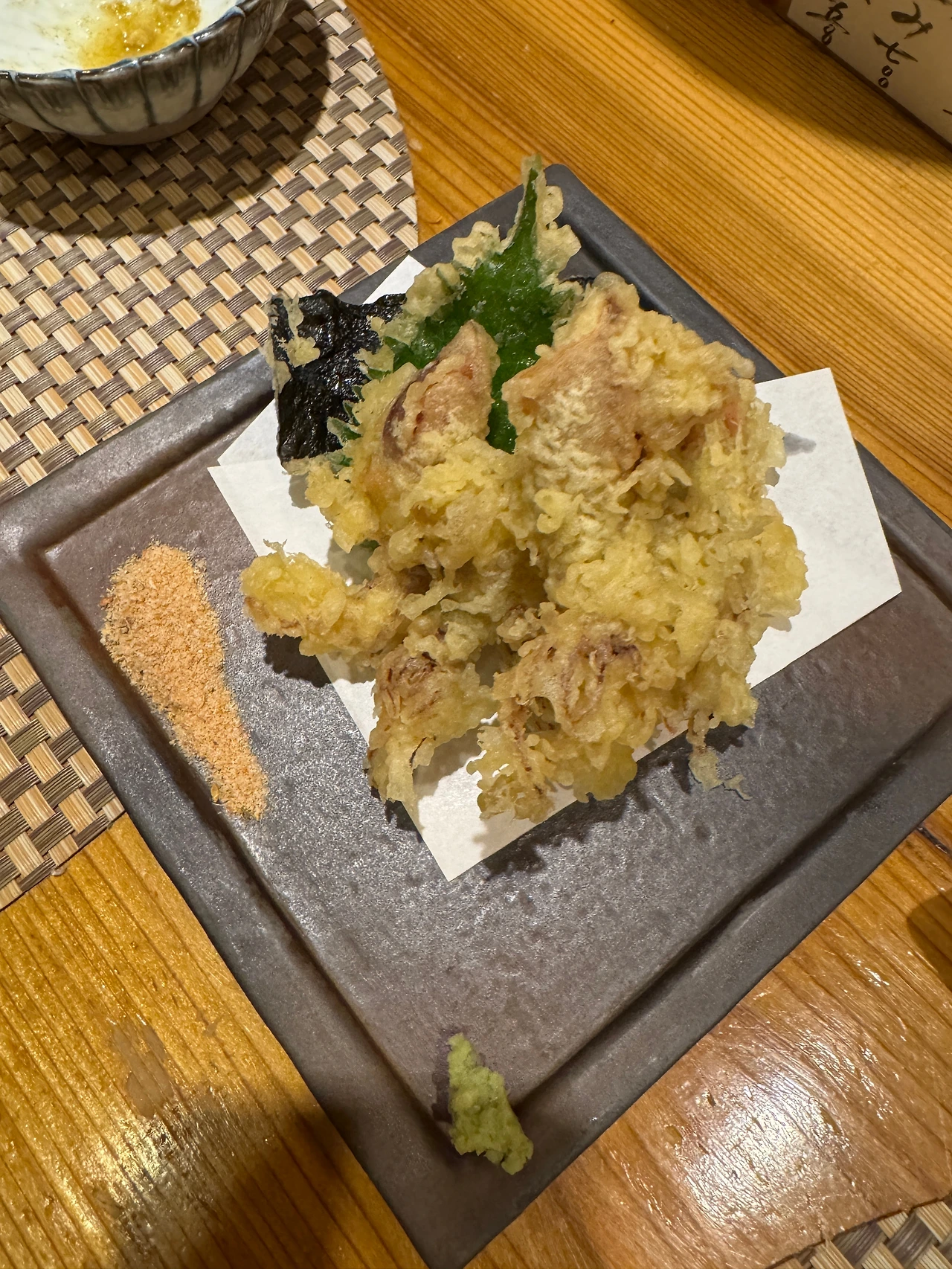 ホタルイカ天ぷら(호타루이카텐푸라 800¥). 재철인 만큼 다양한 방식으로 먹어봤다. 너무 바삭한 겉바속촉. 안에 내장의 녹진함이 약간 익혀서 더 두드러지는 것 같다. 1도 안 비리고 신선 그 자체!