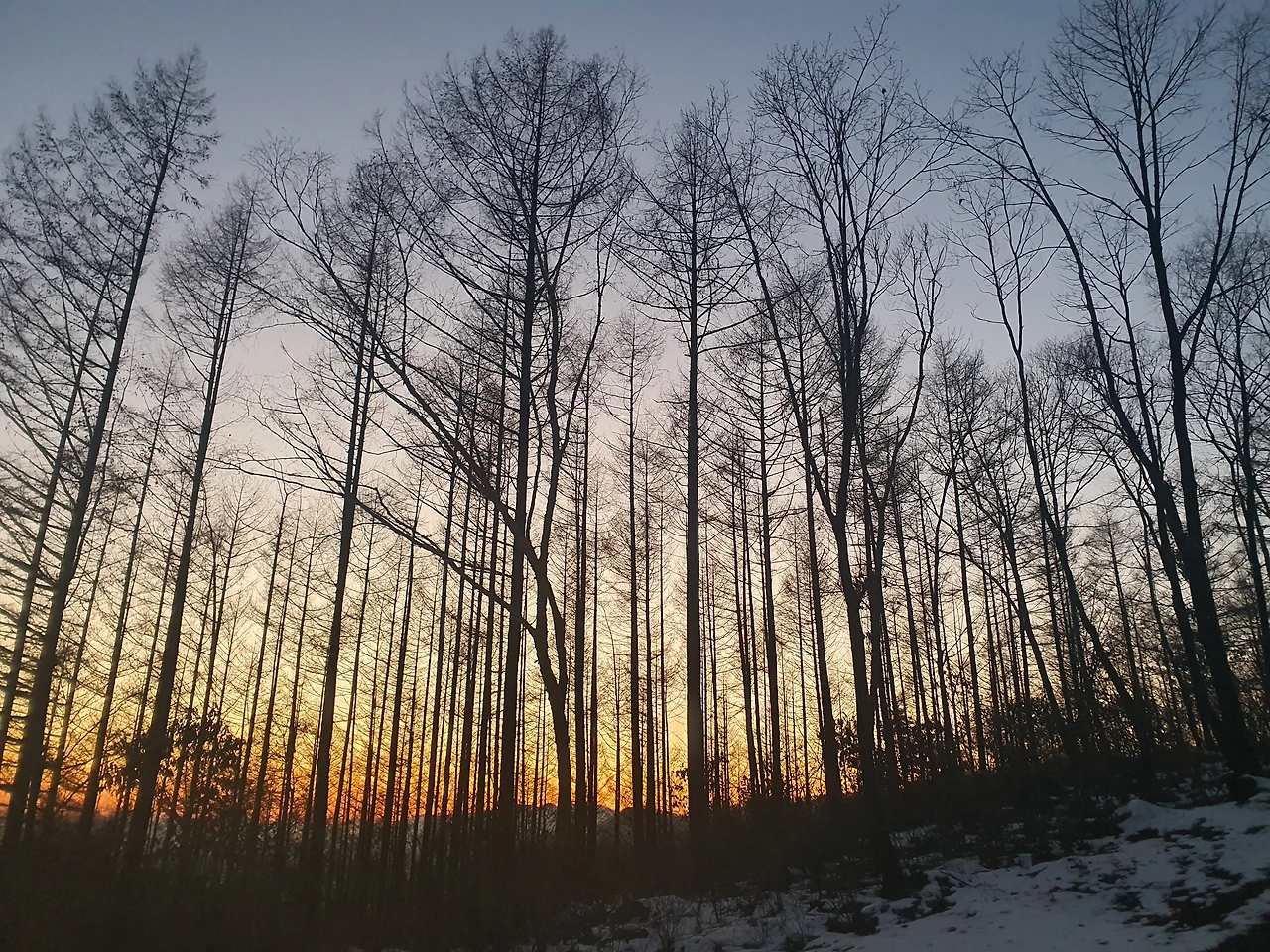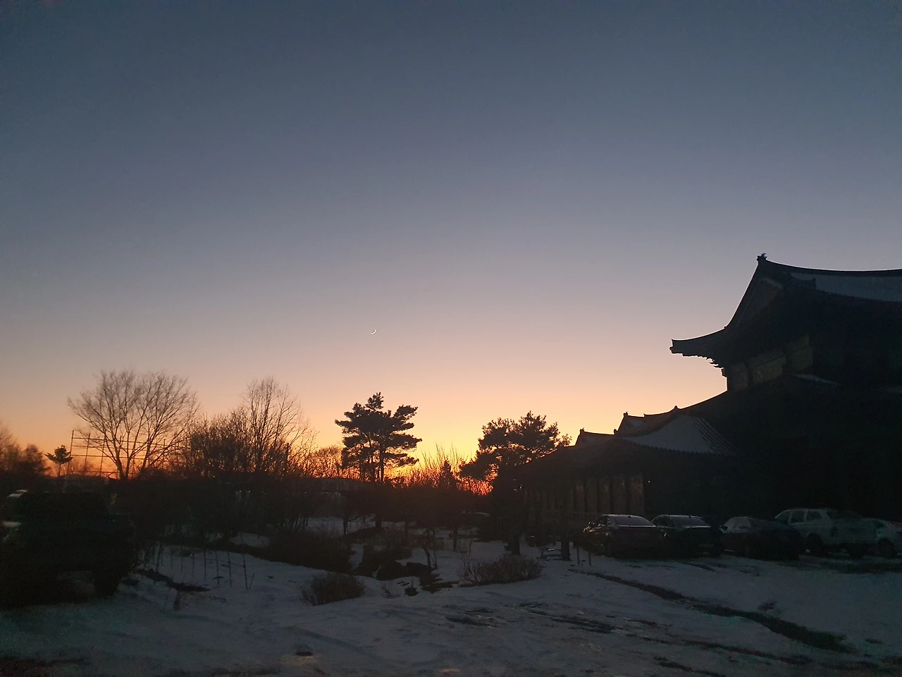 도착해서 망경산사보다 해발고도100미터가 더 높은 만경사에 올라 해가 넘어가는 걸 바라봤다. 눈을 아주 작게 뜨고 태양빛을 바라봤다. 해가 넘어가기 무섭게 산은 추워졌고, 리본에 새해소망을 적어 묶었다. 내려오는 길에 어둑해진 밤하늘과 낙엽송 사이로 손톱같은 달을 봤다.