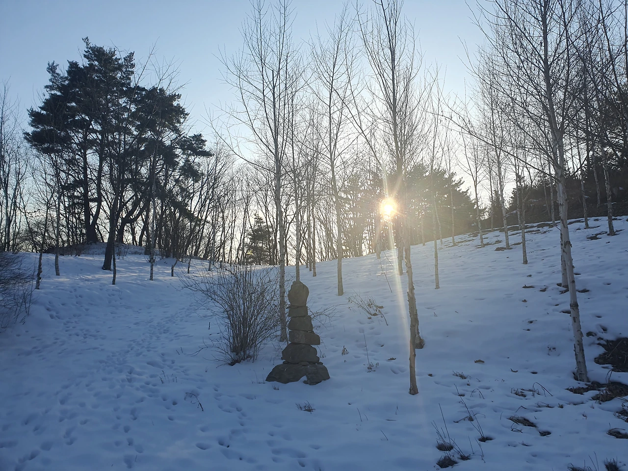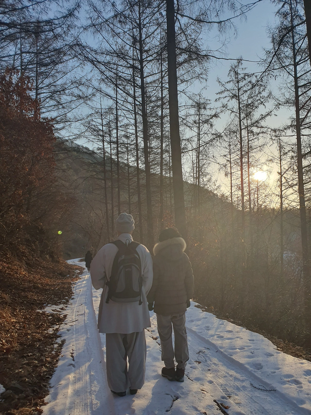 다음날 운탄고도를 걸었다. 해를 보고 싶었으나 걸어도 걸어도 해는 보이지 않다가 갑자기 코너길에서 해가 불쑥 나타나니 너무 반가웠다.