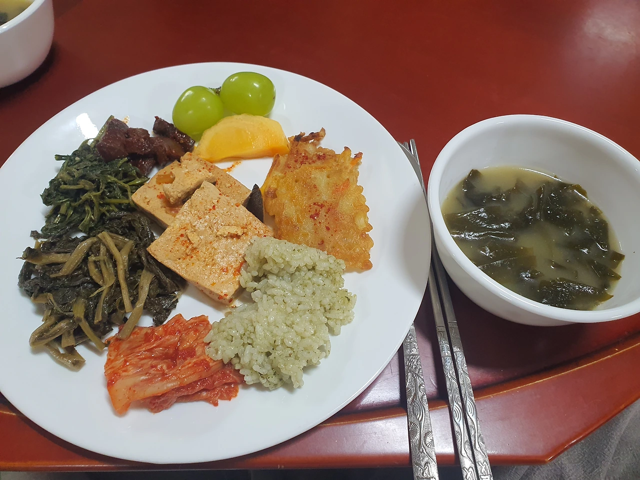 산사에서 스님들이 직접 키우셨다는 눈개승마와 야생화나물을 저녁 공양으로 먹으며 또 손톱같은 달을 봤다.