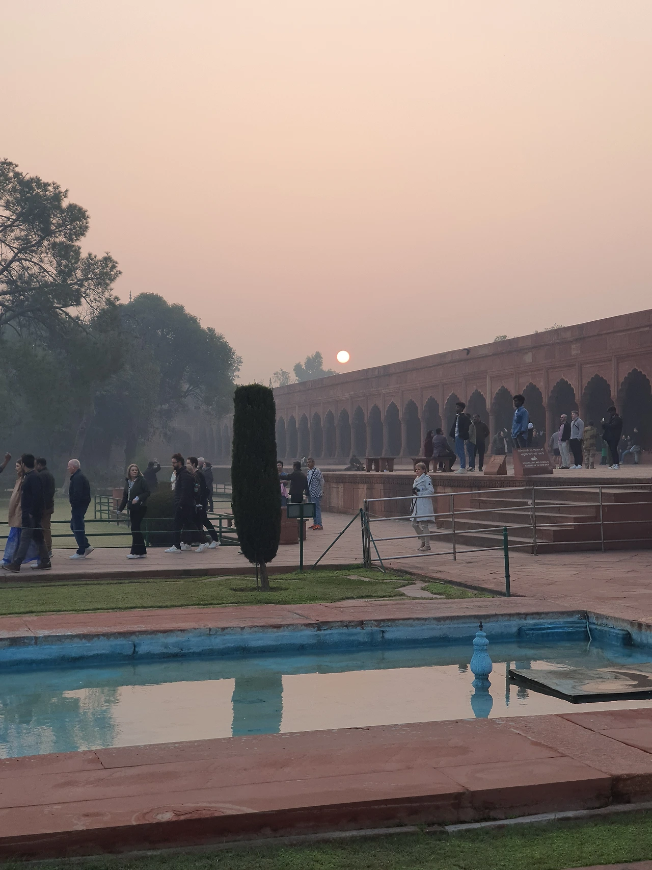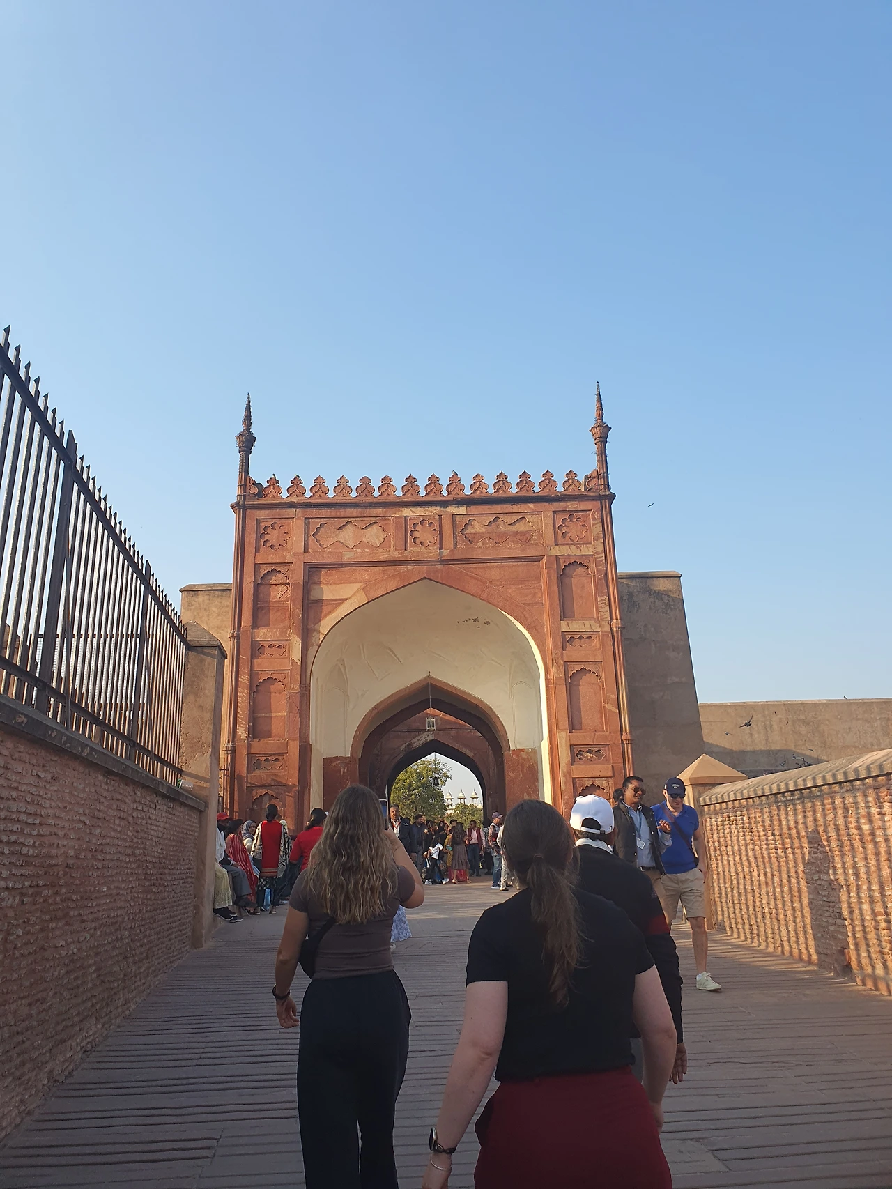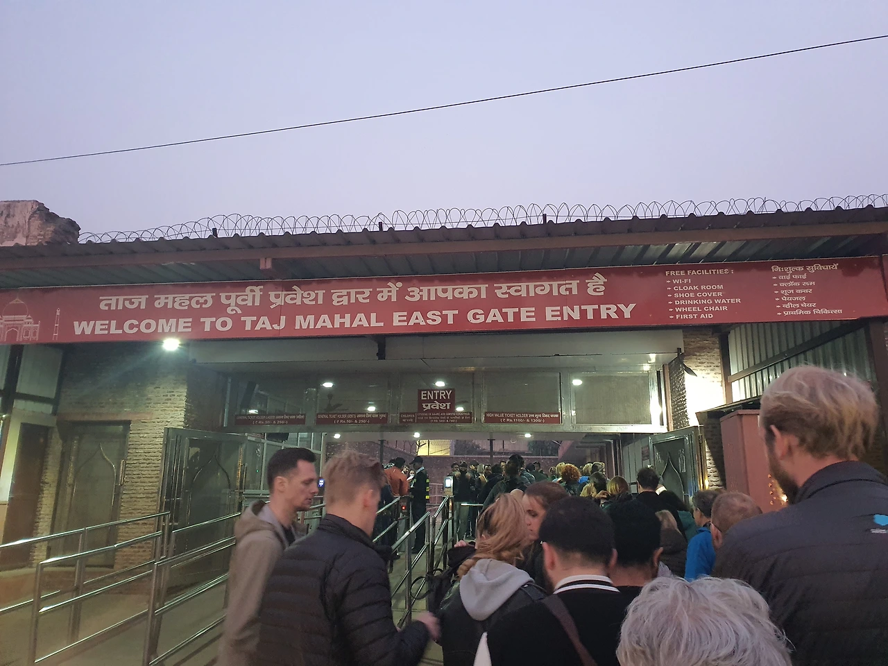 새벽부터 일어나 도착한 타지마할 입구엔 이미 많은 관광객들이 즐비해있었다. 어스름하고 해가 뜨기 전 여명 속에서 타지마할 입구에 도착했다. 모든 게 완벽했다. 타지마할의 입구인 파라다이스 게이트가 액자가 되어 그 안으로 보이던 타지마할의 아름다움은 너무나도 황홀했고, 가이드가 설명해주던 파라다이스 게이트의 의미는 감동적이었지만 듣는 내내 무척 배가 아파졌다.