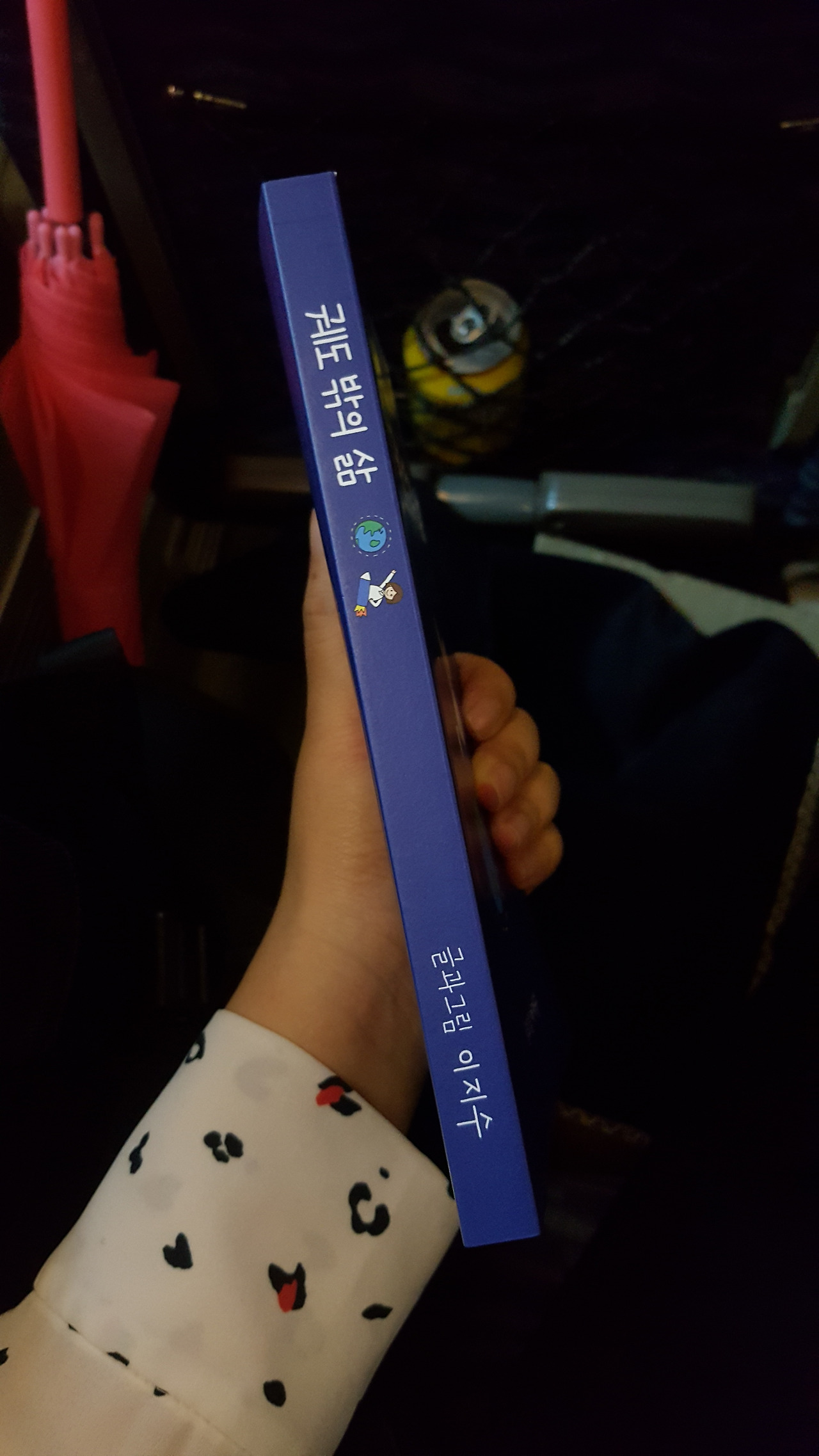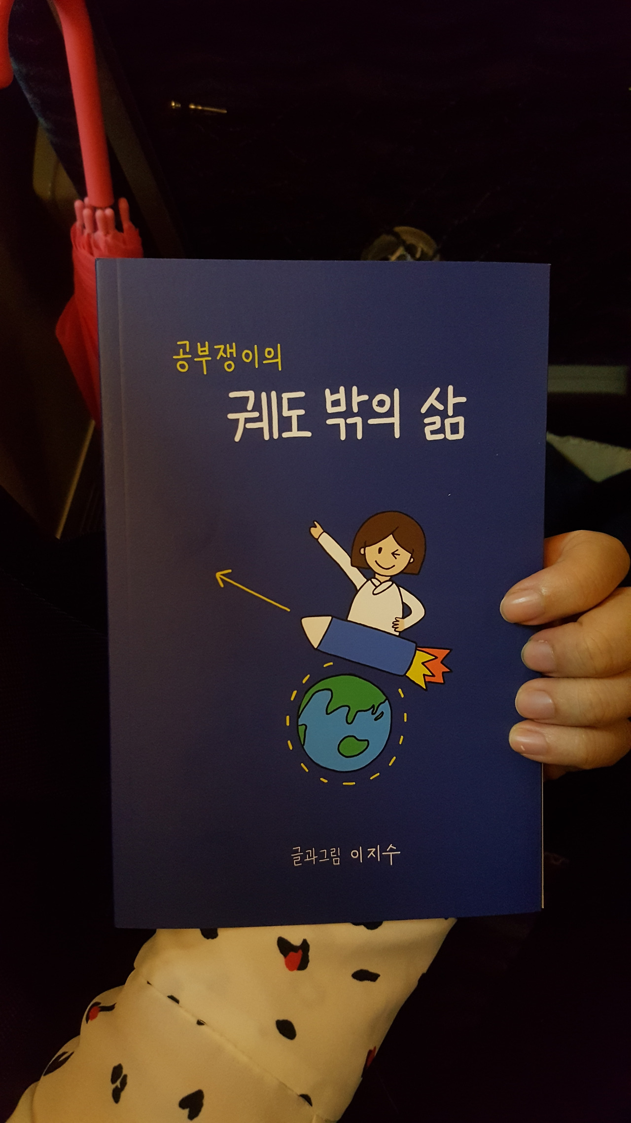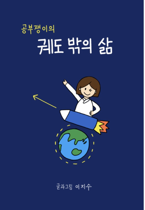 표지 그림은 궤도를 표현할 수 있는 우주 색을 배경으로, 발사체에 올라탄 나를 그렸다. 첫 글의 포부처럼 나는 스스로를 인공위성이라 여겼지만, 이제는 발사체에 올라타 궤도 바깥으로 이동한다.