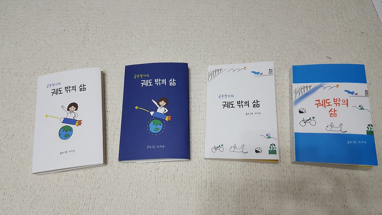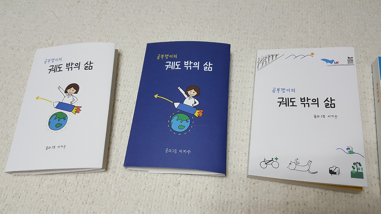 최종 인쇄본은, 공부쟁이를 추가해서 <공부쟁이의 궤도 밖의 삶>으로 확정했다. 내가 돌던 궤도는 어떤 궤도였나, 공부쟁이의 궤도였다. 공부쟁이가 들어가야 나를 더욱 잘설명한다. 모범생은 너무 바른 이미지인데, 나는 모범적이려고 한 게 아니고 그저 공부가 즐거웠을 뿐이다. 내게 공부쟁이의 의미는 공부를 좋아하는 사람, 배우기를 즐기는 사람이다.그런 의미를 담았다. 물론 공부를 오래 한 모범생을 포괄한다.