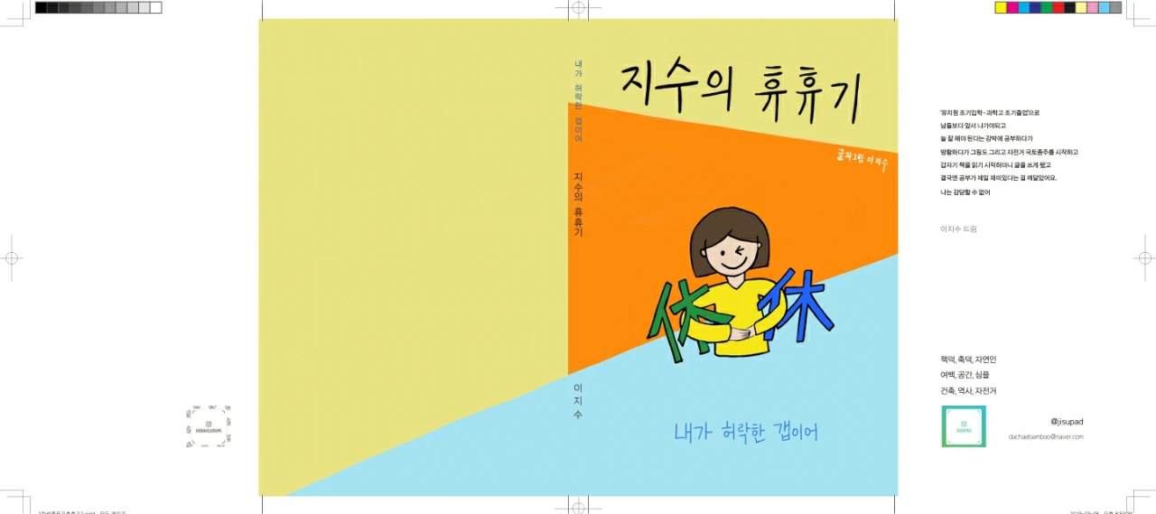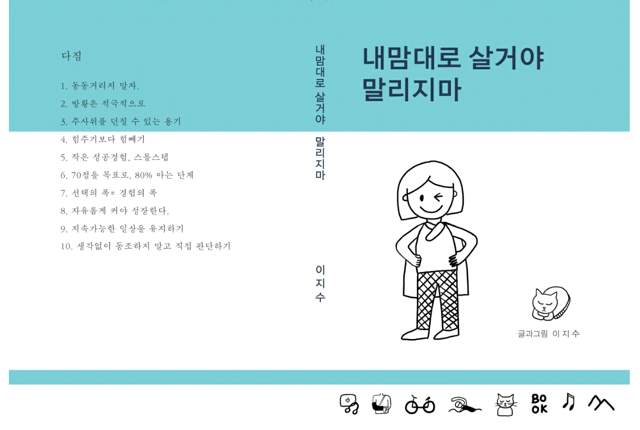 표지 그림은 파워 포즈로 알려진, 허리에 손을 얹고 있는 당당한 자세로 한껏 당참을 뽐냈다. 전 글에 등장한 바로 그 친구다! 친언니는 1차 샘플본 표지를 보고 학급문고, 관공서 공보 같다고 평했다. 날카로운 평가였다.