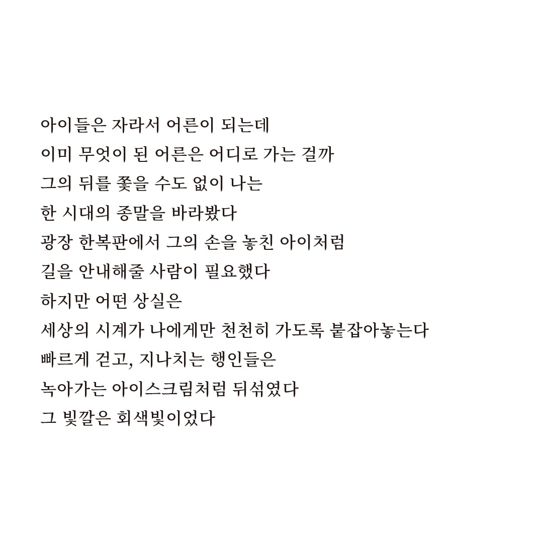 다른 것보다도, 사랑한다는 말을 전해드리지 못하는 지금이 가끔은 너무너무 힘들다. 나는 그때보다 조금 더 만남을 사랑하고 술을 즐기며, 옷을 입는 것을, 내가 사는 이 세상을 좋아할 줄 아는 어른이 되어가고 있다.