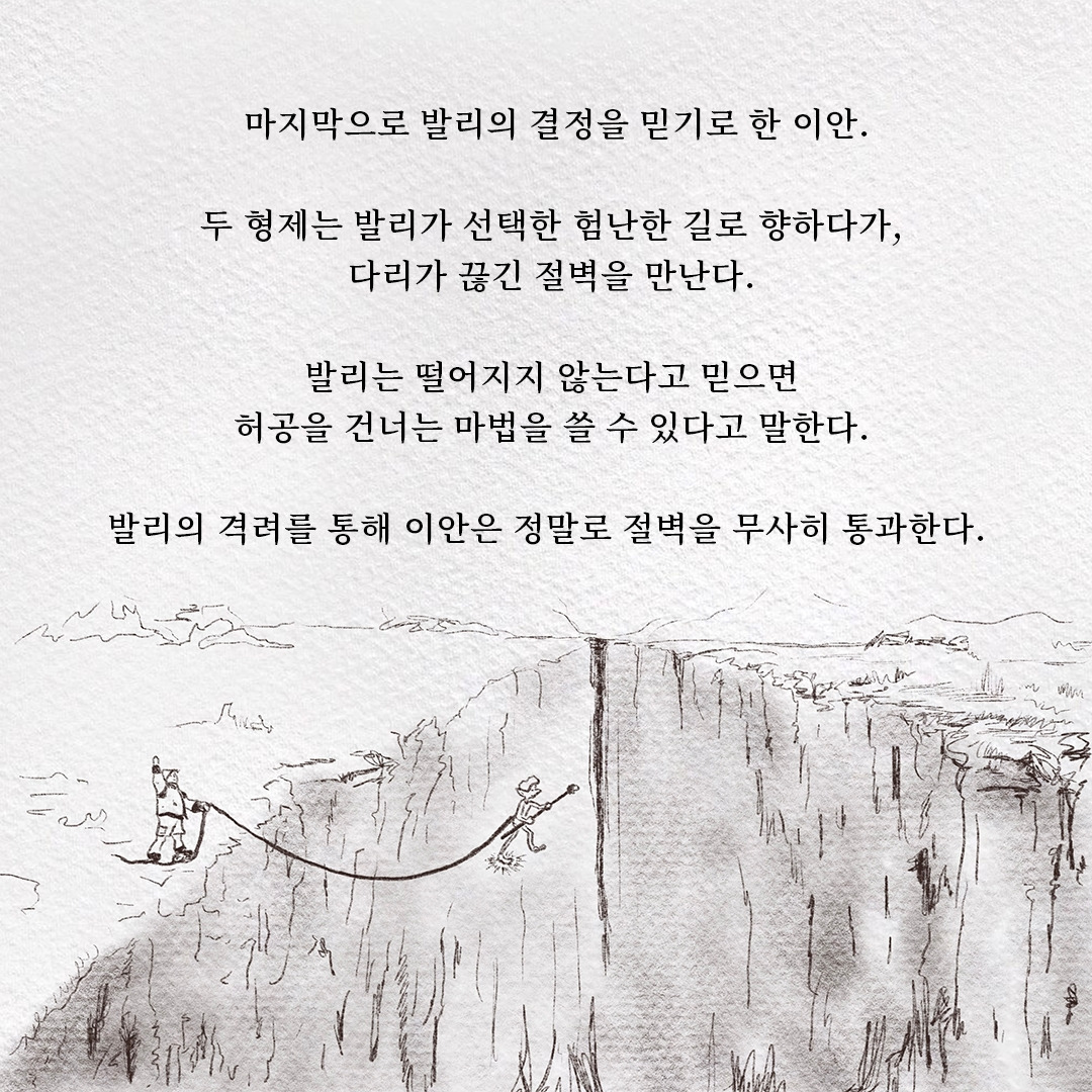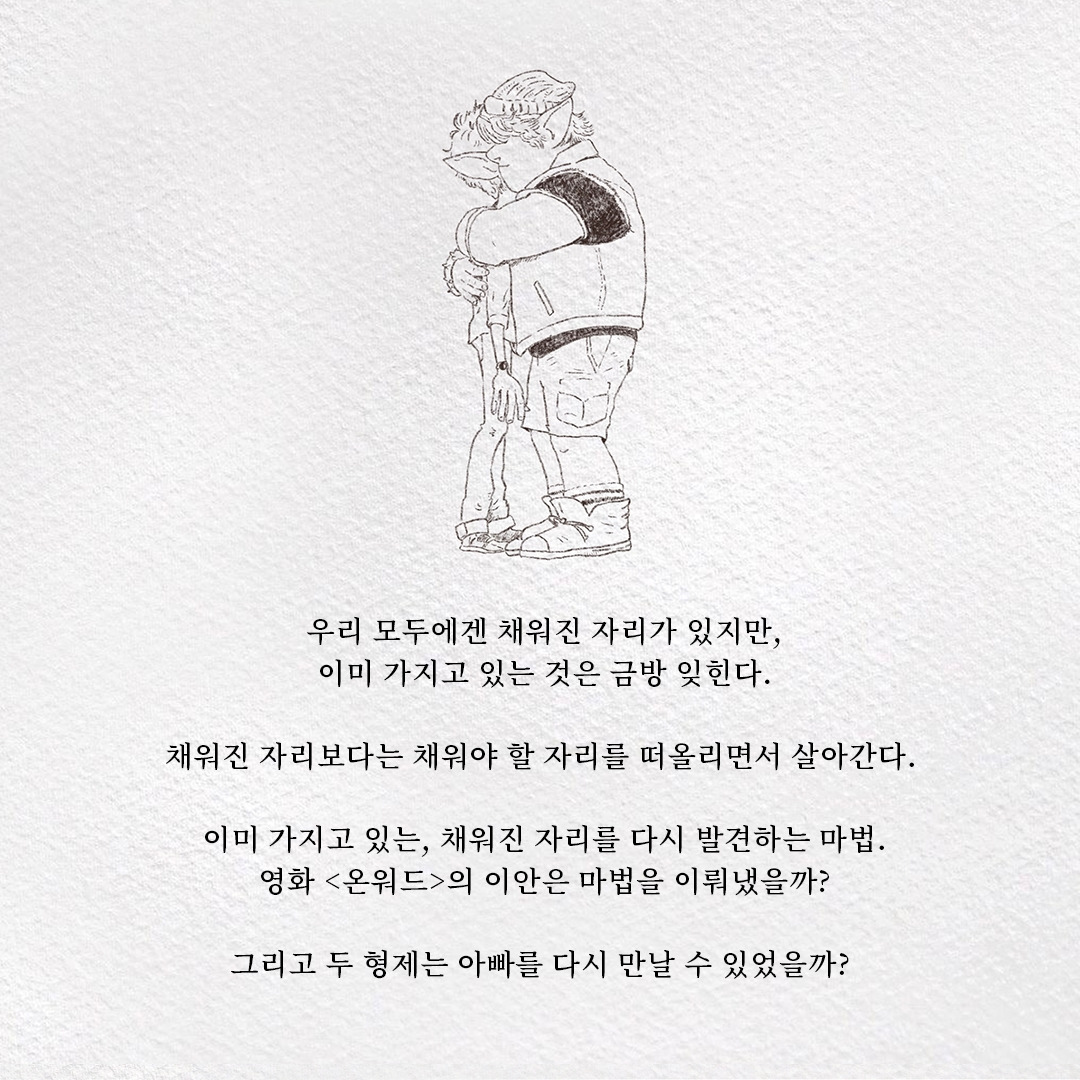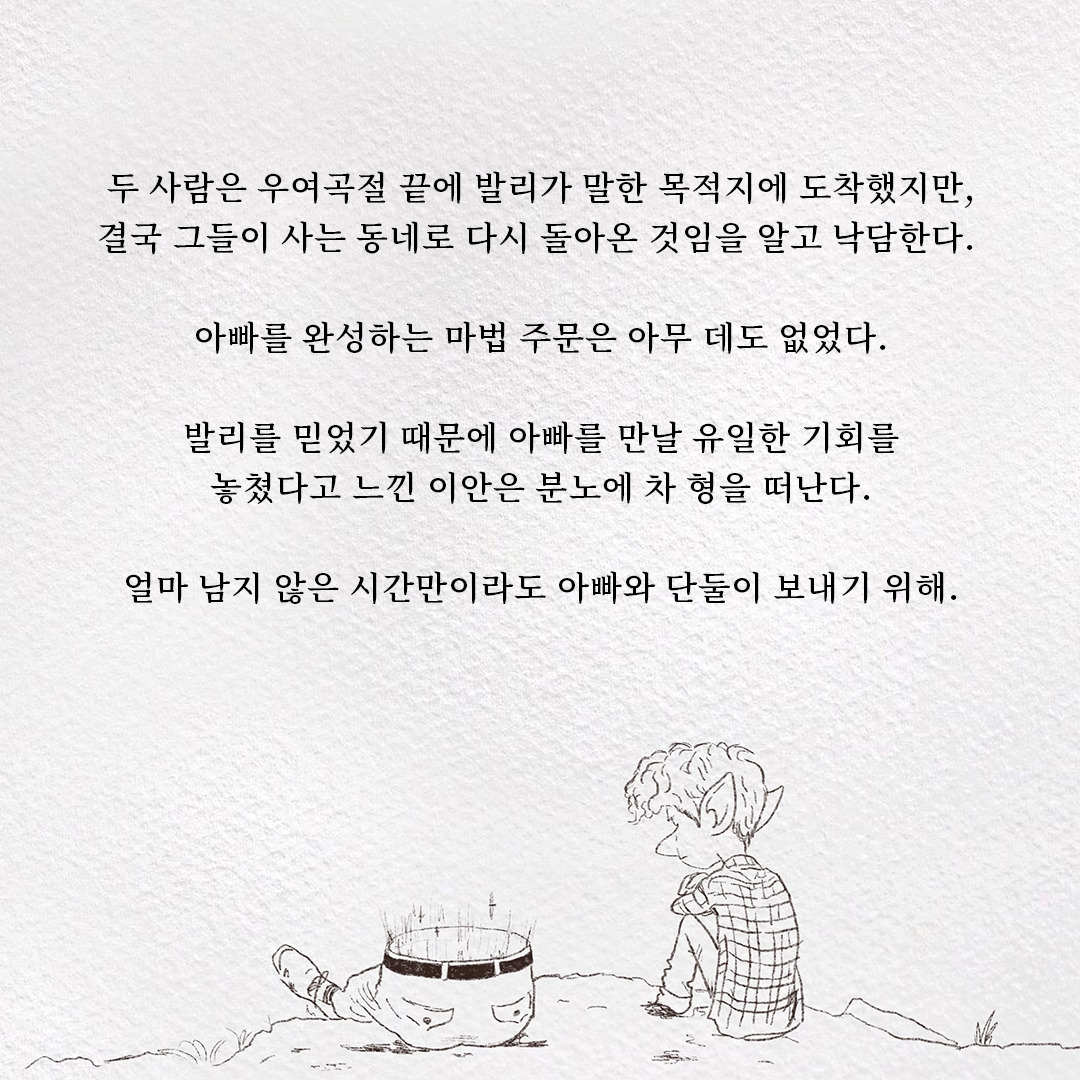 원래 가지고 있는, 채워진 자리를 발견하는 것은 이안과 발리가 마법을 찾아 떠난 모험처럼 어려운 일이다. 채워진 자리는 거의 그 존재감을 드러내지 않고 한자리에 계속 있었으니까. 그리고 언제나처럼 우리는 항상 제자리에 있는 것들을 쉽게 잊으니까. 그렇다면 사연자는 이미 마법을 발견한 것이다!