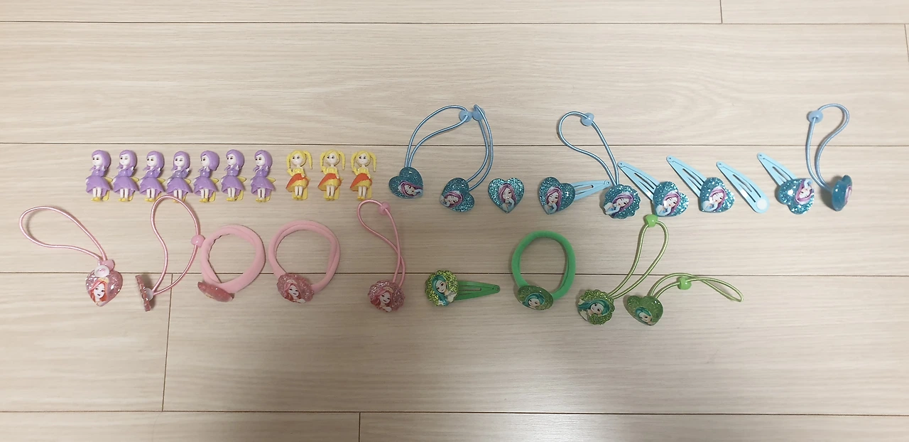 이런 제길.. 머리핀만 있는 게 아니었다. 머리끈도 있었고, 피규어도 있었고, 무엇보다 그 안의 캐릭터는 3명이 아니었다. 노란 머리의 넌 대체 누구니?