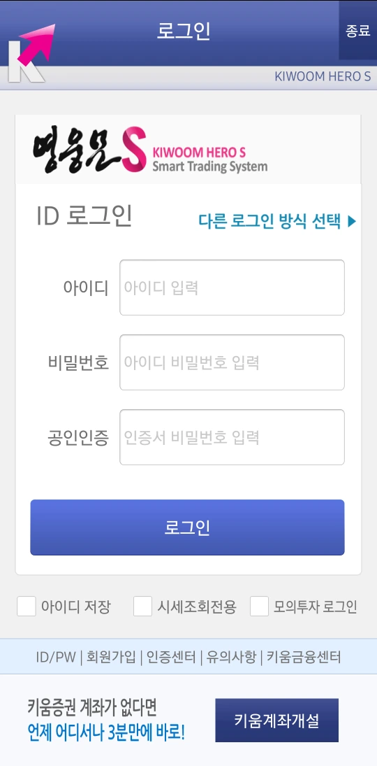 증권사를 고를 때도 비교하면 할수록 생각보다 많은 증권사가 있고, 각 회사들의 차이점이 있다는 것을 알게 된다. 몇 년 동안 수수료 면제, 평생 면제, 현금을 준다거나 랜덤으로 주식을 1주 주는 이벤트 등 여러 가지 혜택과 이벤트가 있다. 수수료도 회사마다 차이가 있다. 한참 고민을 하다가 키움증권에서 계좌를 개설했다. 키움증권에는 수수료 혜택도, 이벤트도 없었다. 그냥 일반적으로 사람들이 가장 많이 이용하는 증권사가 키움이라는 말을 들어서였다. 키움의 주식 어플리케이션인 영웅문S는 중장년층 아저씨들이 쓸법한 낡은 UI였다. 버튼마저 터치가 잘 안 될 것처럼 생긴... CMA통장을 개설했던 하나금융투자 어플도 매우 실망스러웠던지라 원래 증권사 어플들은 다 이런가 싶기도 했다. 그나마 다행인 건 아직까지 어플을 쓰면서 터치가 안되었다거나 렉이 너무 심하다거나 하는 오류는 겪은 적이 없다.