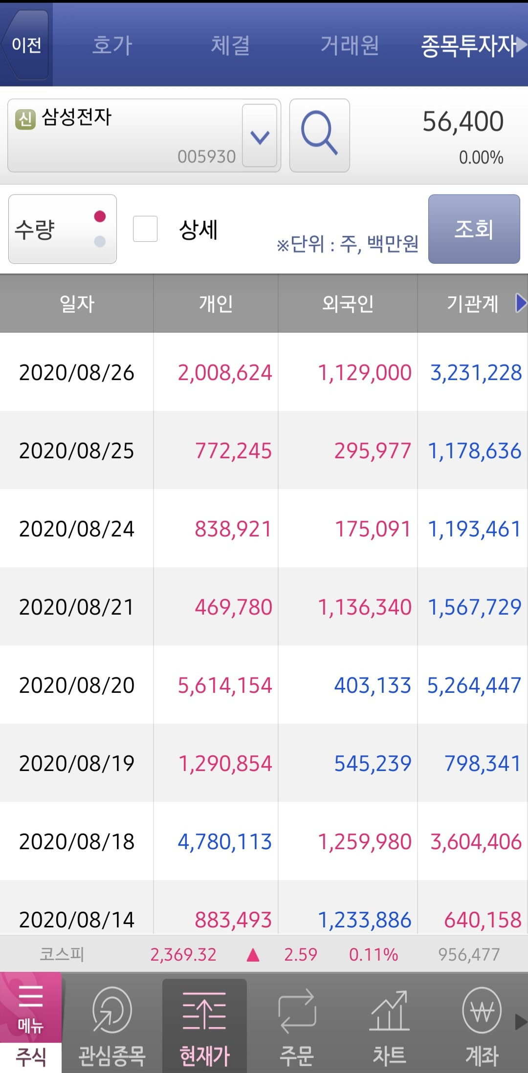 - 종목투자자: 투자자별 최종 거래량을 일별로 보여준다.
