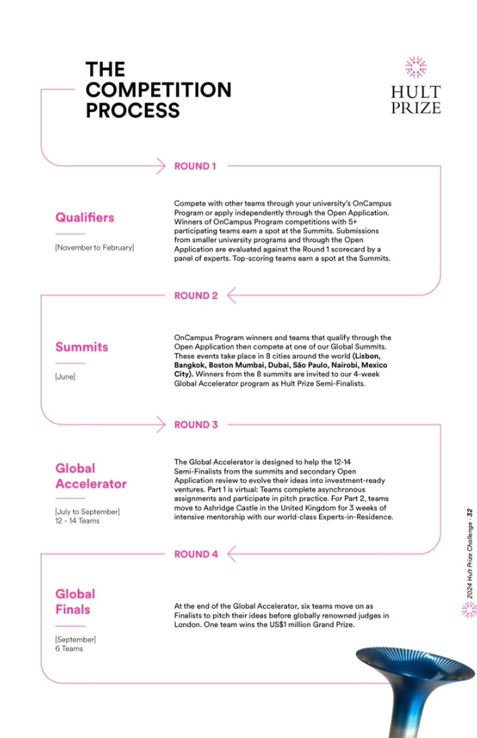 유엔(UN)과 파트너십을 맺고 매년 UN 지속가능발전목표(SDGs)와 연관된 주제를 선정하여 진행되며, 우승팀에게는 100만 달러(약 13억 원)의 상금이 주어지는 권위 있는 대회다. 예선을 거쳐 세계 결선까지 진출하게 되면 아이디어를 실제 사업으로 발전시킬 수 있는 멘토링과 글로벌 네트워킹 기회를 얻게 된다.