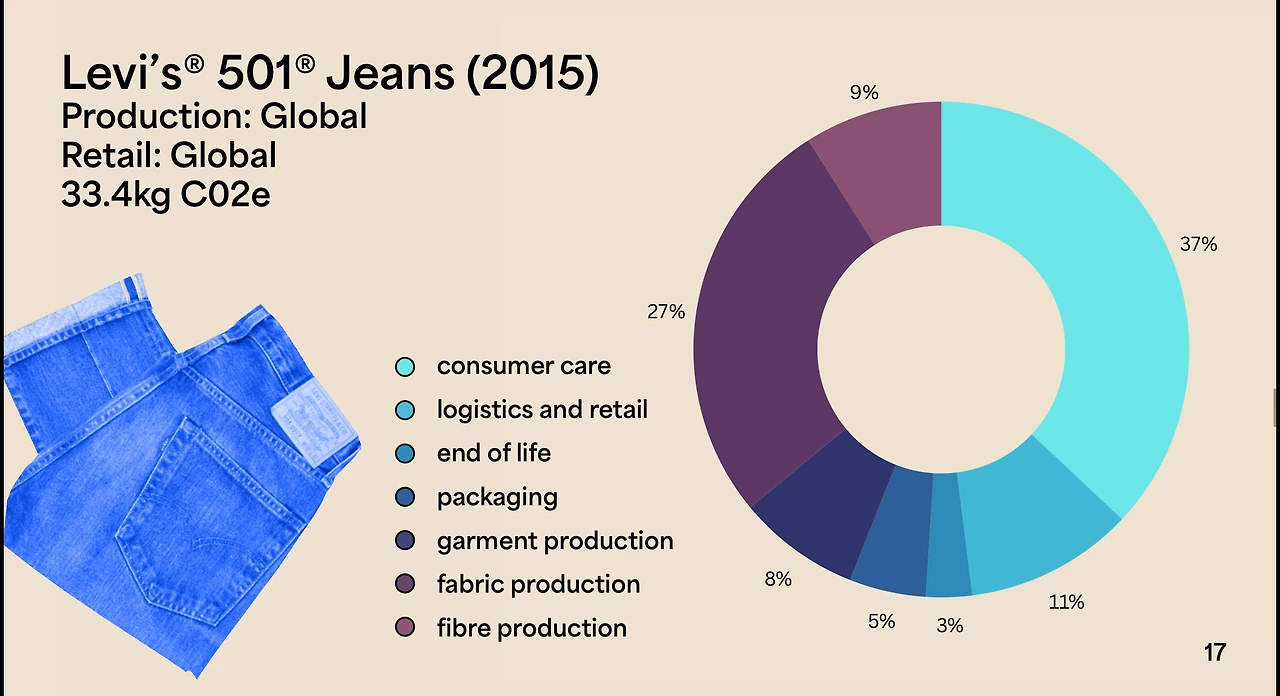 예를 들어, Levi’s 501 청바지 한 벌이 33.4kg의 탄소를 배출한다는 *LCA 분석은
