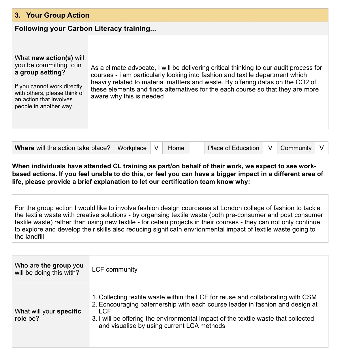 트레이닝 후 우리는 Carbon Literacy 인증을 받기 위해서는 세 가지 글을 작성해 제출해야 했다.