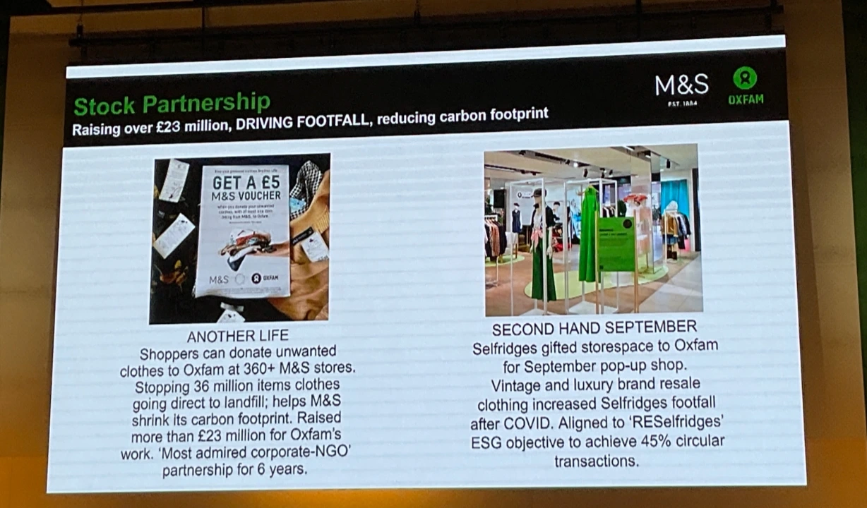 대표적 사례가 M&S × Oxfam ‘Another Life’ 프로젝트다. 소비자가 헌 옷을 매장에 기부하면, 그 옷은 재판매·재사용 과정을 거쳐 3,600만 벌의 순환과 2,300만 파운드의 기부금으로 이어졌다. 또 다른 사례인 Barbour ‘RE-LOVED’ 프로젝트에서도 기부받은 재킷은 리워크·업사이클을 거쳐 다시 판매된다.
