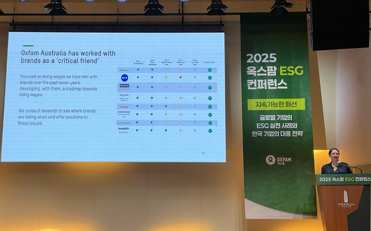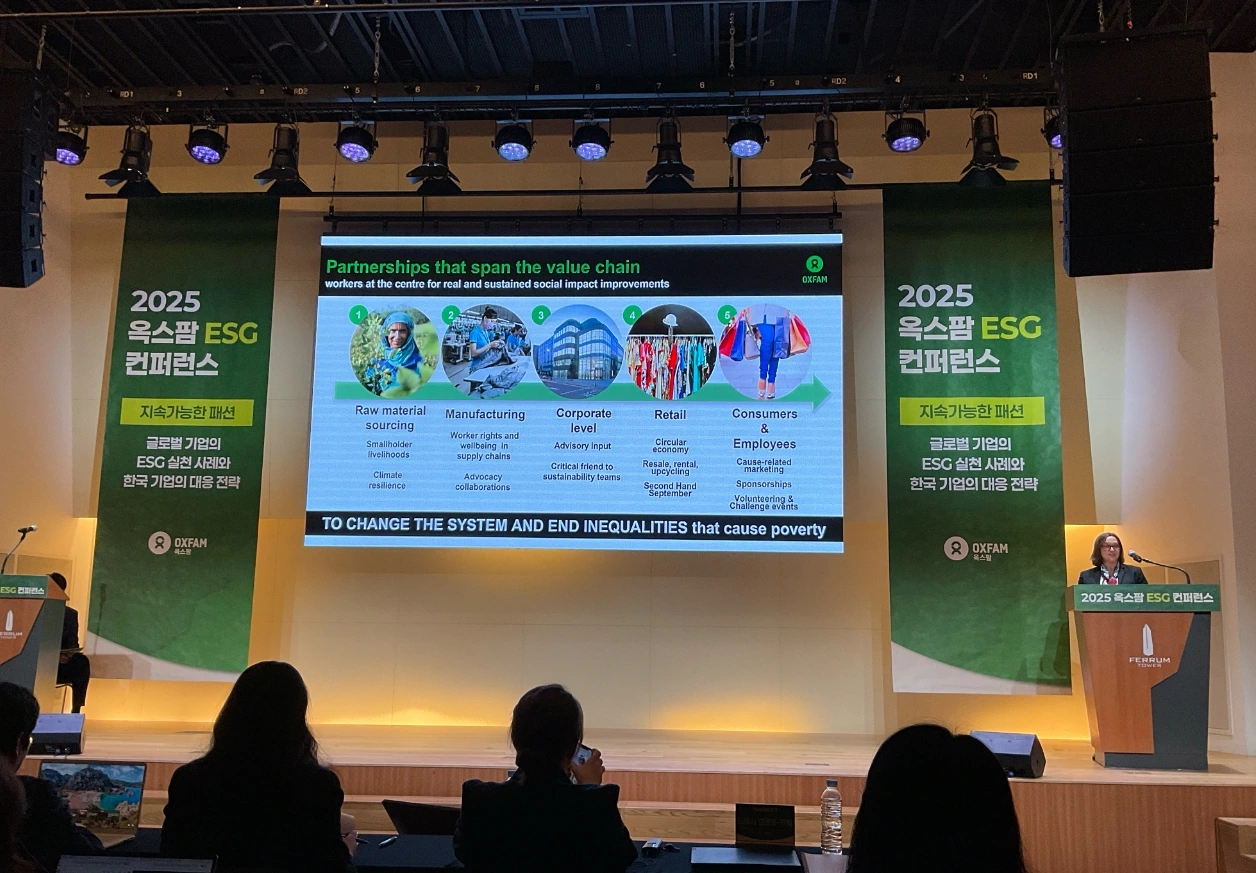 그래서 2025년 9월 26일, 서울 중구 페럼타워에서 열린 〈2025 옥스팜 ESG 컨퍼런스: 지속가능한 패션〉은 더욱 의미 있게 다가왔다. 이 자리는 ‘규제에 어떻게 대응할 것인가’를 넘어, “패션 산업의 책임을 누구와, 어떤 관계로 나눌 것인가”를 묻는 자리였다.