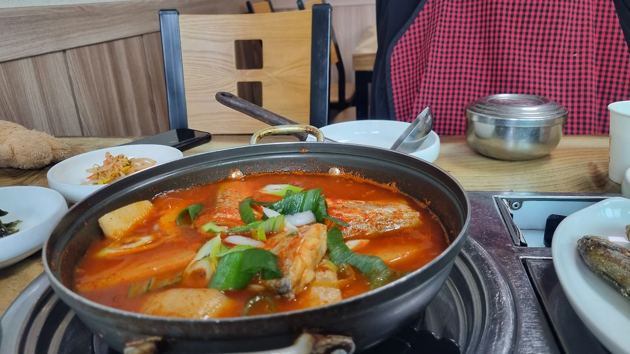 추억이 있는 밥집에서 갈치조림을 시켰다(1인분 16000원). 간이 세면 어쩌나 걱정했는데 기우였다. 맛이 좋았다. 감자도 넣어줘서 더 좋았다. 얇게 썬 무는 좀 실망이었다. 폭신하게 익은 도톰한 무조림이 맛있는데. 밑반찬도 맛있었다. 파래무침도 신선했다. 언니는 밥을 잘 먹지 않았다. “요즘 입맛이 없어.” 아침도 거른 나는 공깃밥을 싹싹 비웠다. 우리 만남에 계획은 하나였다. 청암산에 가는 것. 산에는 월요일 아침에 가기로 했으니 오후에 뭘 할지는 아직 미정.