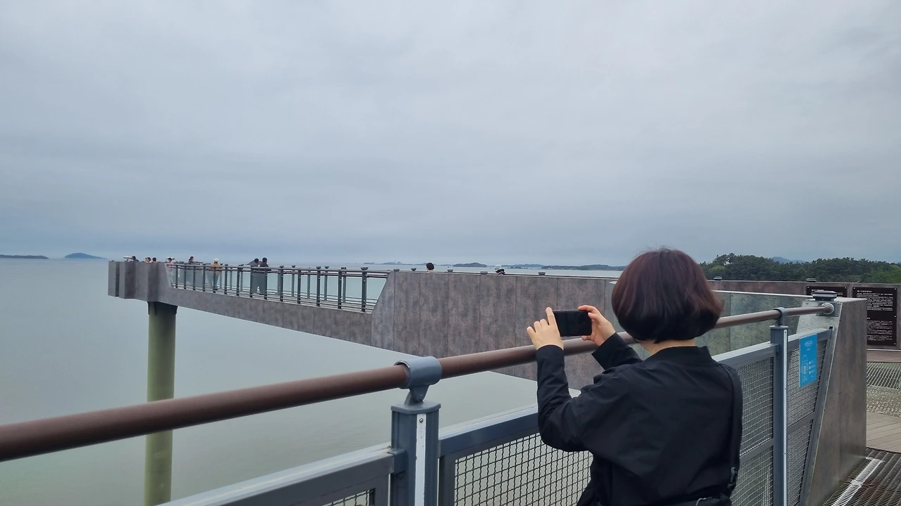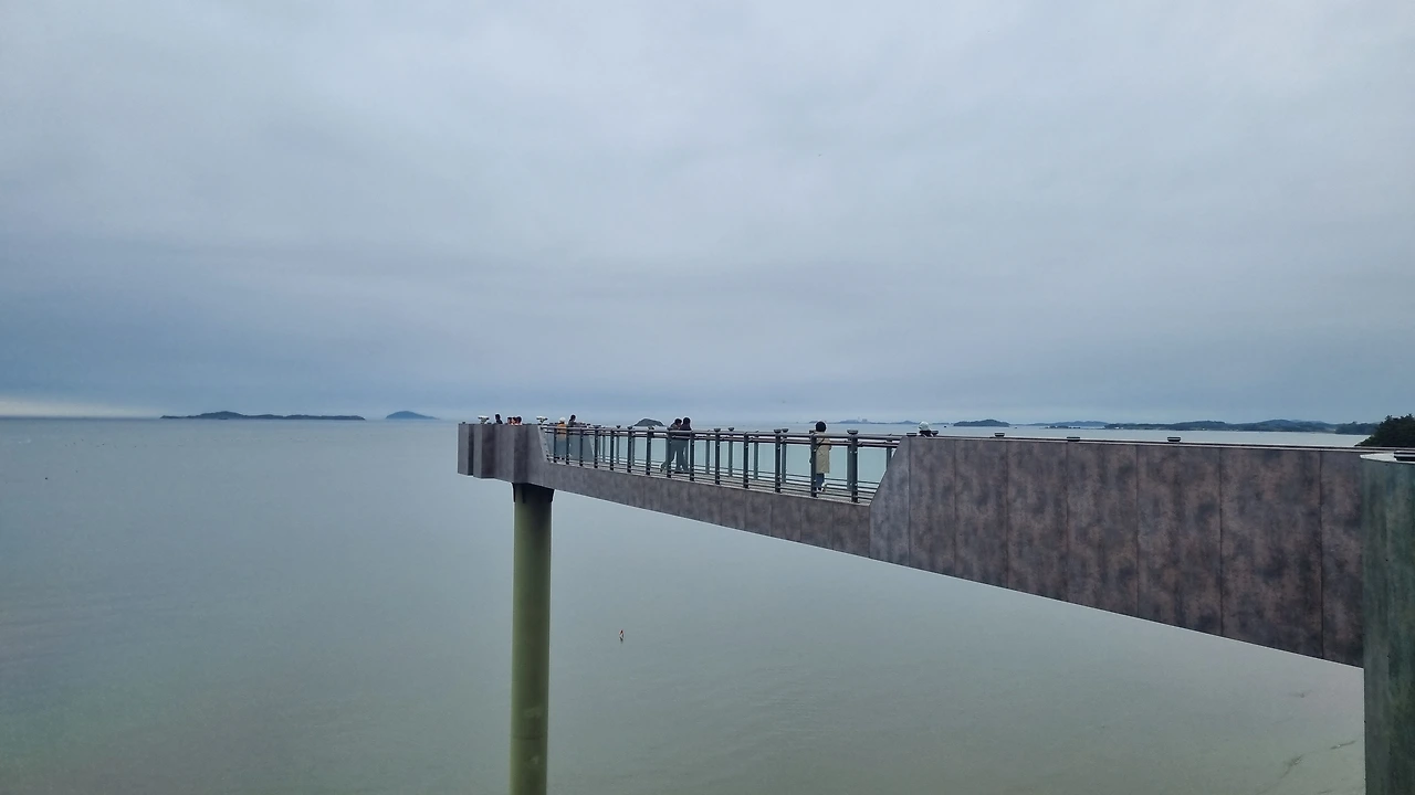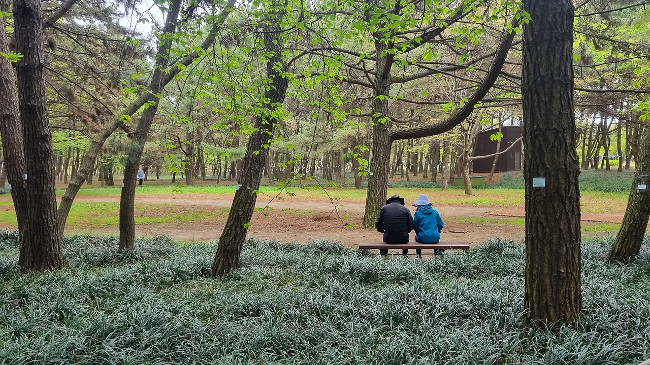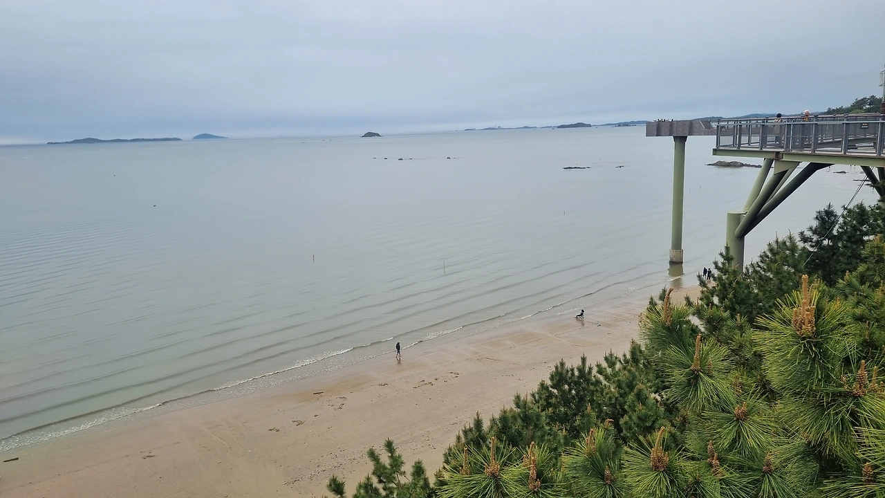 솔숲에서 바다가 보인다. 생각해 보니 이번 안식월은 대부분 산에 다녔다. 수리산을 제일 많이 갔고, 독서모임 사람들과 서울 우면산에도 갔고 인천 청량산에도 갔다. 내일은 청암산에 간다. 산은 아니지만 괴산에서는 산막이옛길도 걸었다. 바다는 안 갔다. 군산에 오니 바다도 산도 갈 수 있다. 나이스다. 완벽하다. 날은 흐렸지만 춥지는 않았다. 바닷가에서 사람들도 개들도 산책을 하고 있다. 맨발로 걷는 사람도 눈에 띈다. 그때까진 몰랐지. 그 갯벌, 나도 걷게 될 줄은.