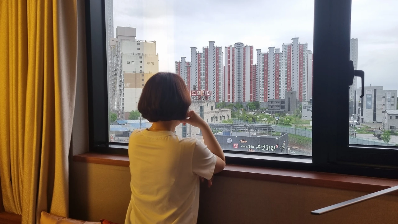 탑클라우드 호텔 801호. 옆방이 없는 코너룸. 마음에 들었다. 나름 시티뷰가 예뻤다. 조명도 이쁘고, 창밖을 보며 서 있는 언니 모습도 맘에 들었다.