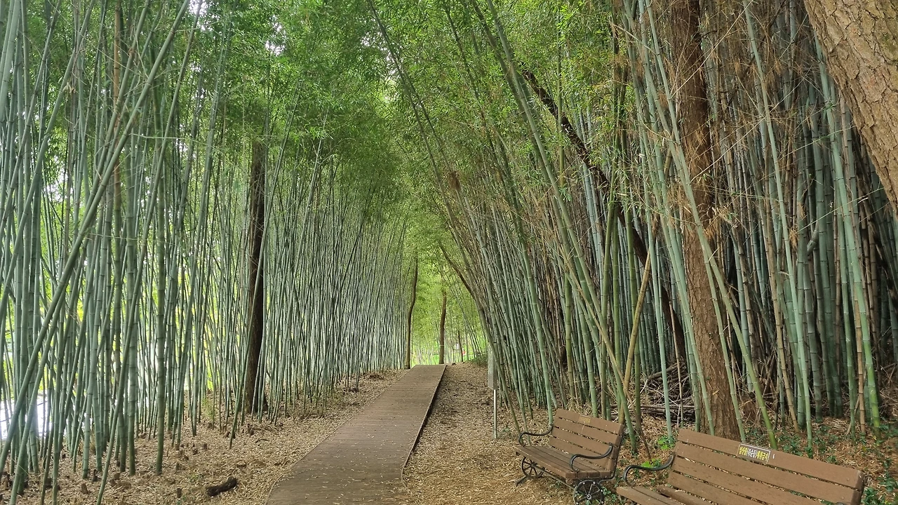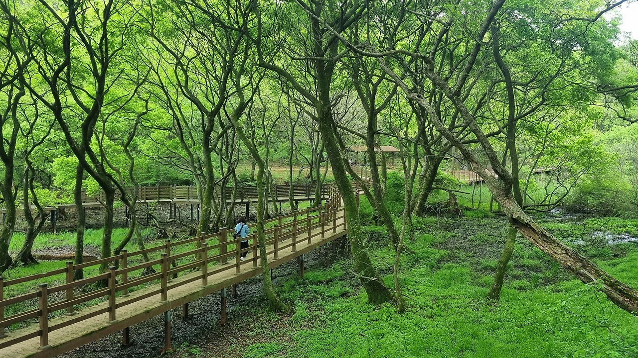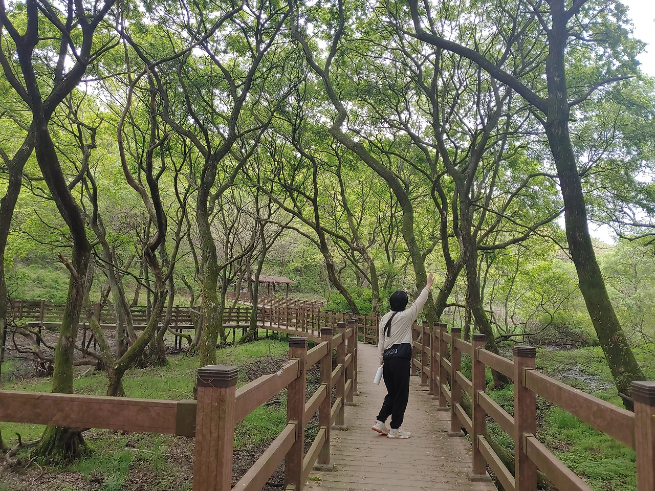 우리가 처음 만난 건 대숲. 어디선가 푸바오가 풀을 뜯어먹고 있을 것만 같은 그런 대숲이었다. 그늘이 멋지게 드리워졌다. 한여름에도 걸을 수 있겠는 걸. 바닥은 고운 흙길. 맨발로 걷는 사람들이 종종 눈에 띄었다. 오늘은 양말을 벗지 않았다. 숲 속 데크가 깔린 길을 만났을 때는 싱가포르 공원을 걷는 기분이었다. 이 비슷한 길을 내가 어디서 걸어봤는데... 싶으면 싱가포르의 어느 숲이었다. 대문자 Y 모양의 나무도 만났다.
