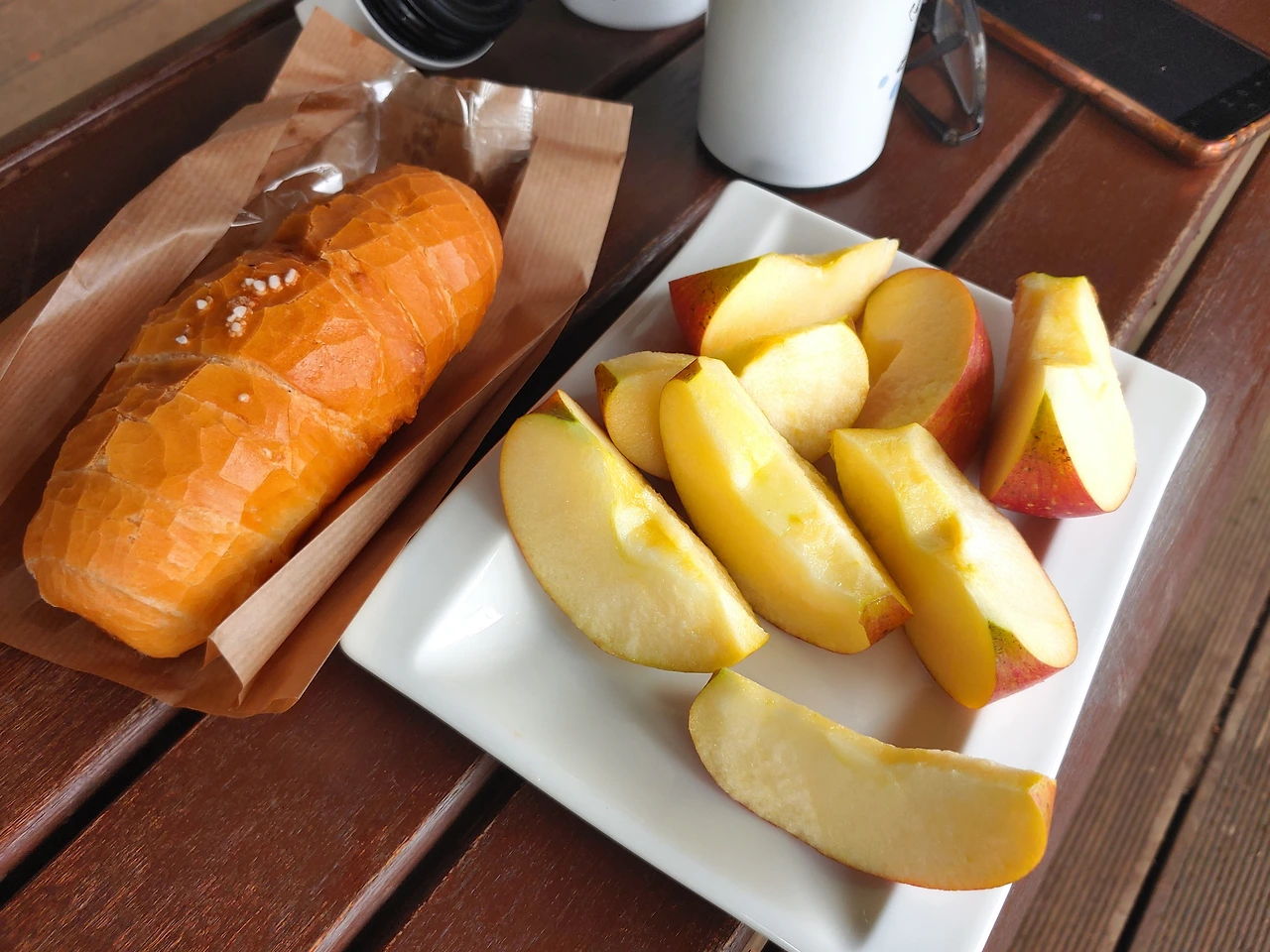 바사사삭. 소금빵을 먹었는데 바게트 풍미가 난다. 뭐지. 이 녀석은. 한 번 더 바사삭. 역시, 이건 바게트다. 미니 바게트. 바케트를 닮은 소금빵이라.. 특이한데 맛있어. 이런 소금빵은 먹어 본 적 없는데... 추앙하는 데는 다 이유가 있군. ‘고독한 미식가’라도 되는 양 속엣말을 한다. 언니가 사과와 커피, 소금빵을 먹을 조식 자리를 봐두었다고 말했다. 다 먹지 말라는 말이다. 눈치 챙겨서 빵을 가방에 넣었다.