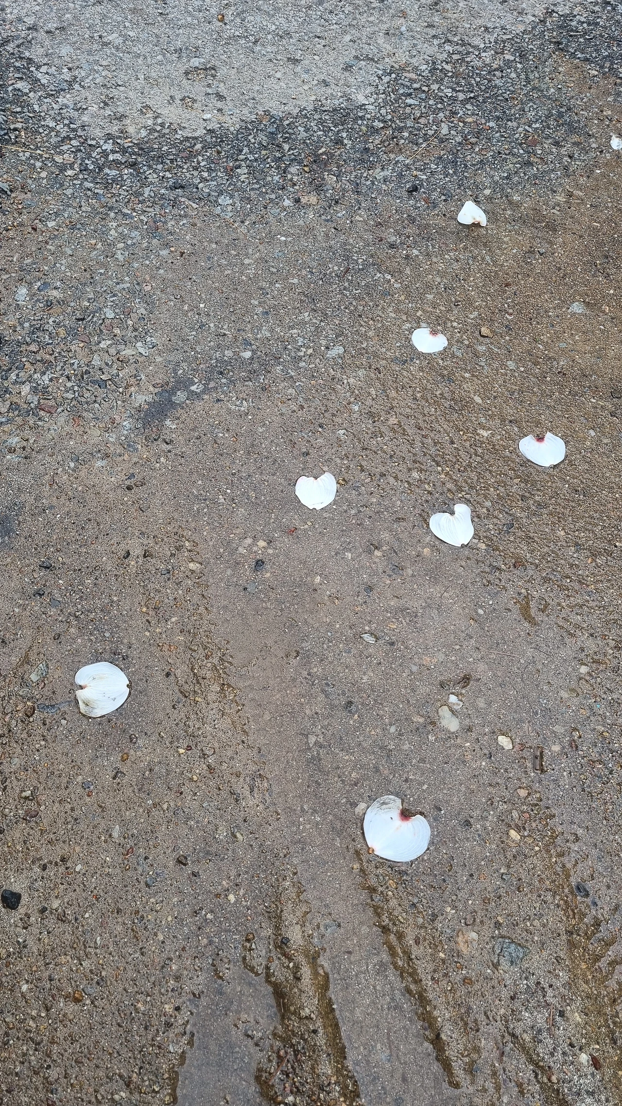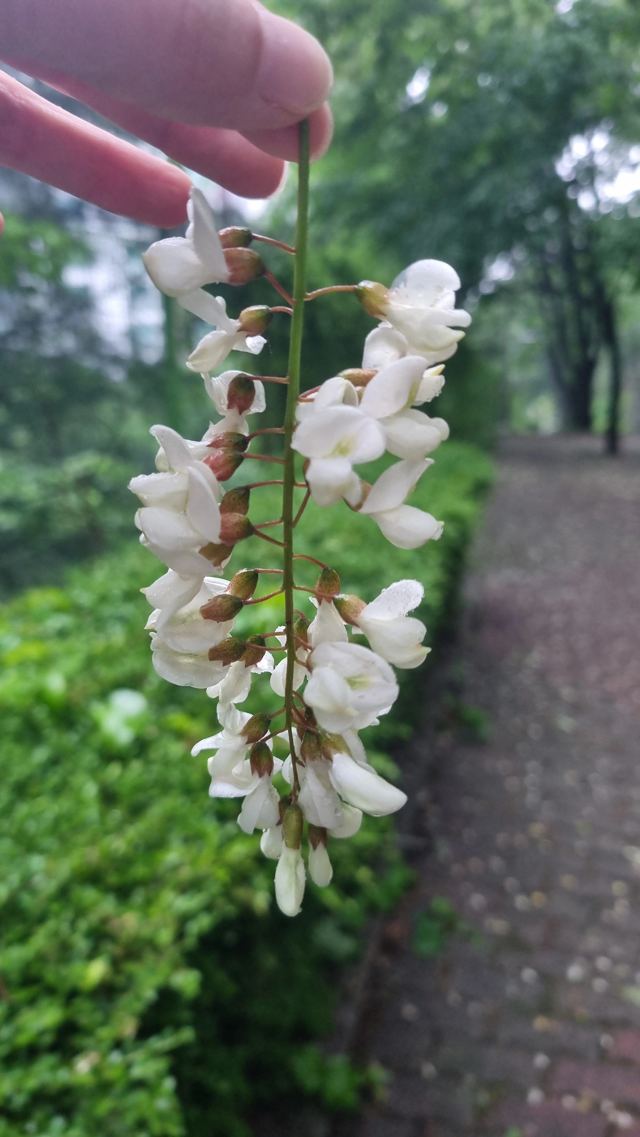 아카시아 꽃은 6월 정도에 피지 않나? 벌써 펴서 그새 많이 떨어졌다. 비바람을 이기지 못했나 보다. 줄기째 떨어진 아카시아 꽃. 아카시아 꽃을 아카시로 고쳐 써야 하는 줄 알았는데 아니란다. '아카시아'는 ‘아까시나무’를 일상적으로 이르는 말로 표준국어대사전에 올라 있다. 망설이지 말고 떳떳하고 당당하게 아카시아로 써야겠다.