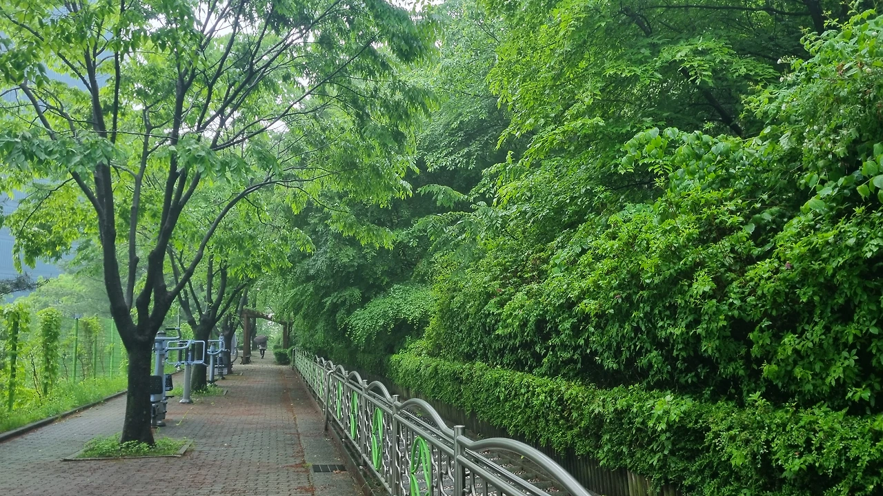 그리고 밖으로 나갔다. 출근하는 사람처럼. 원래는 우리 동 앞을 슬슬 걸으려고 했다. 좀 더 걷고 싶었다. 어차피 시간도 많으니까. 아파트 뒤쪽 숲으로 가는 길이 있다. 숲 가는 길에 간단히 운동할 수 있는 운동기구들도 있지만 이용해 본 적은 극히 드물다.