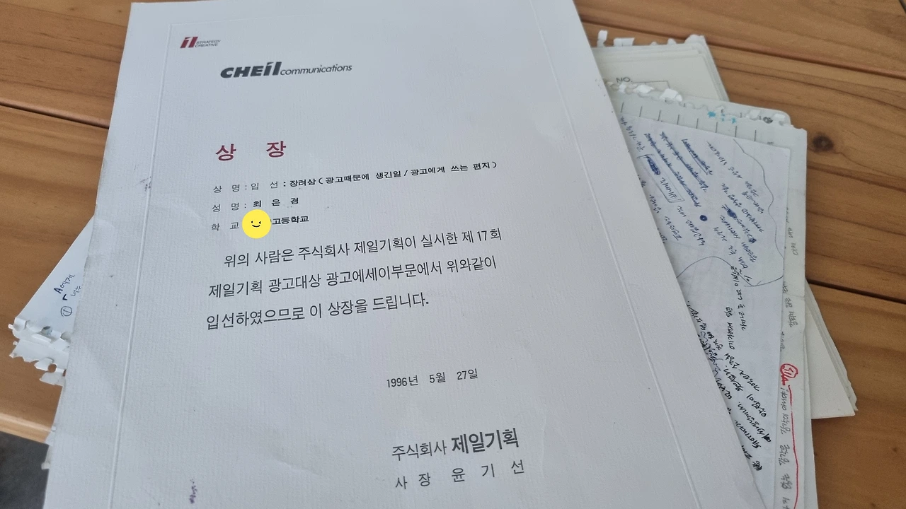 쓰다보니 아름다웠던 내 청춘의 한 시절이 조금 그리웠나 보다. 그런데 상장 날짜를 보니 1996년 5월이다. 헉. 나 고3 때다. 고3 때 이런 걸 하고 있었다는 사실이 나를 놀라게 한다. 수능보다 글쓰기가 좋았던 건가. 나란 녀석도 참 어지간했네.딸아이를 이해해야 할(공부보다 하고 싶은 게 먼저) 구실이 또 이렇게 만들어진다. 어느 별에서 왔나 싶더니 내 딸 맞네.