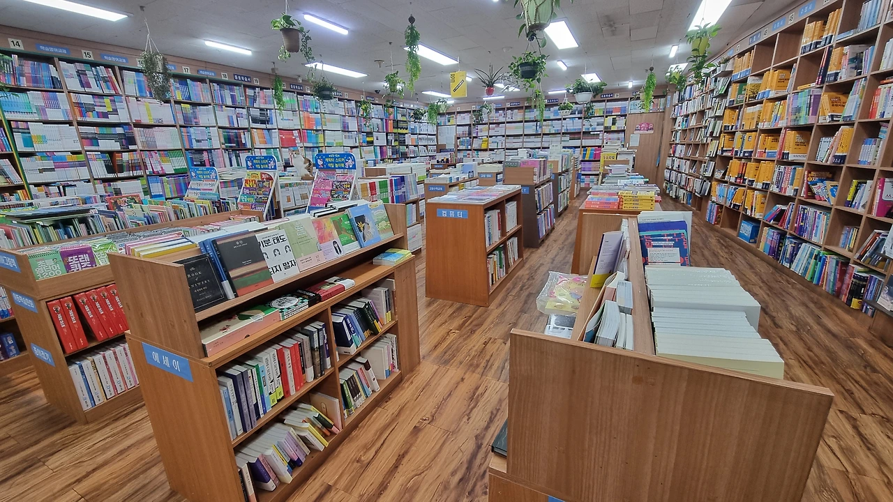 서점의 절반 이상은 초중고등학생 학습지다. 한 3분의 1 이상이 일반 서적 되려나. 고양이들 두어 마리와 주인아저씨가 함께 나이 들어가는 곳이 이 서점이다. 그래서 우리 가족은 이곳을 '고양이 서점'이라고 부른다. 이 작은 지하 서점이 어떻게 십 년 이상을 버티는지 나는 모른다. 나 역시 가끔 들르는 게 전부였다. 온라인으로 사는 거랑 다를 게 없었기 때문이다. 지자체 정책 때문인지 책을 사면 10% 할인을 받는다(오는 7월부터는 지역화폐를 이용하면 10% 페이백까지 된다고 한다).