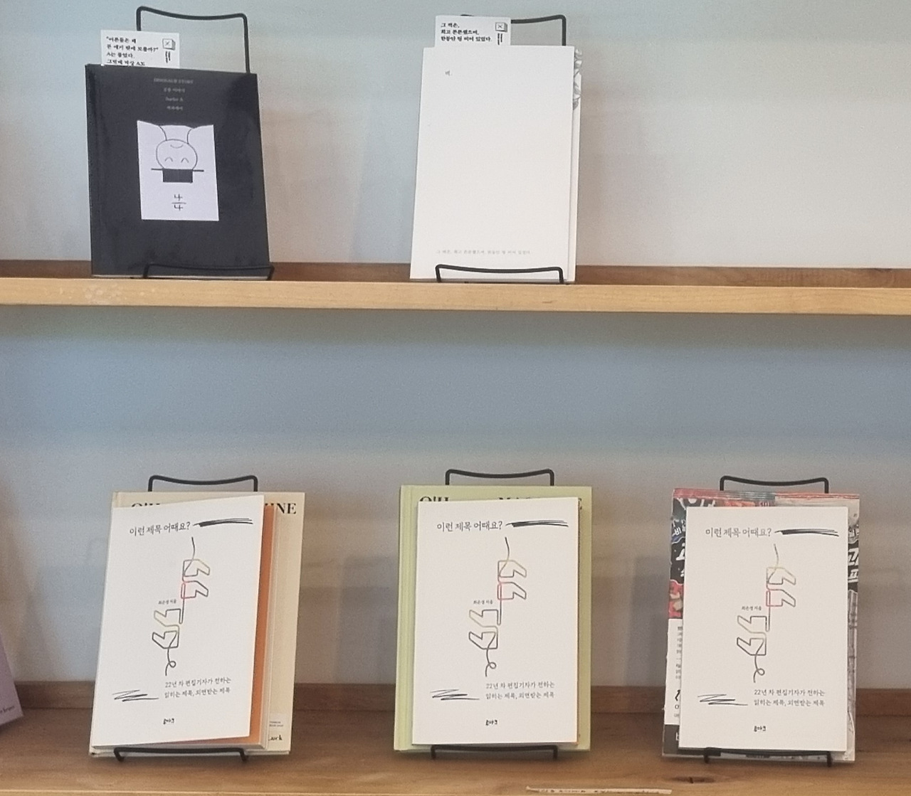 : 최은경 작가님의 책을 모두 읽었습니다. <이런 제목 어때요?>는 새롭고 유용합니다. 제목 하나만으로 책을 쓴 게 특히 놀랍고요. 성인 글쓰기 수업을 하는 저는 자신 있게 추천할 수 있는 책입니다. 불같은 사랑 말고, 천천히 오래오래 사랑받는 책이 될 거예요.