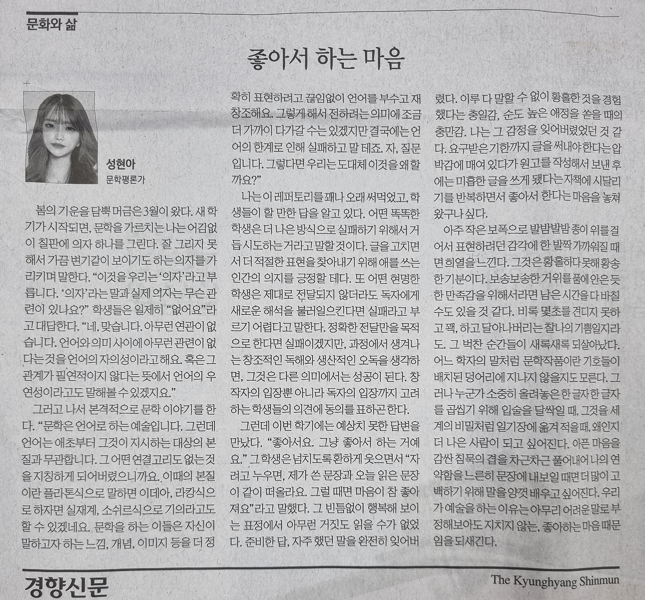 그렇게 신문을 넘기던 중에, 경향신문에서 눈에 들어오는 '제목'이 있었다.