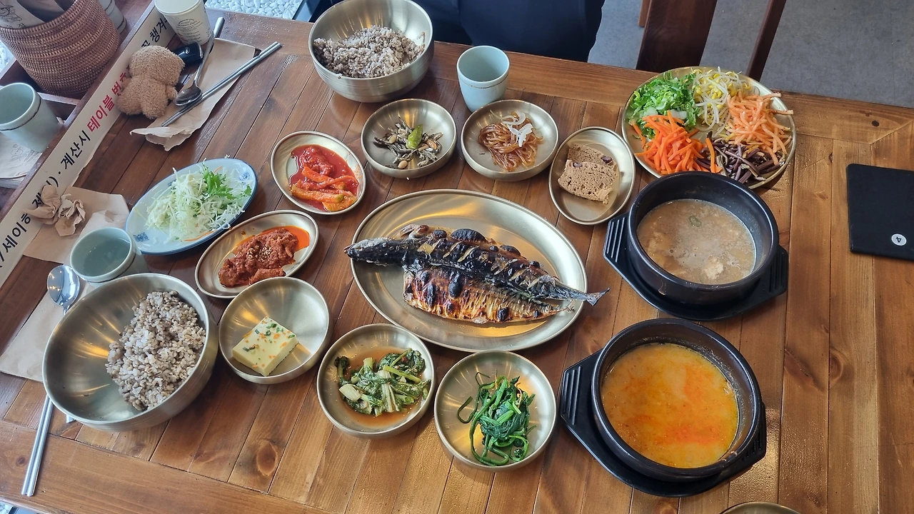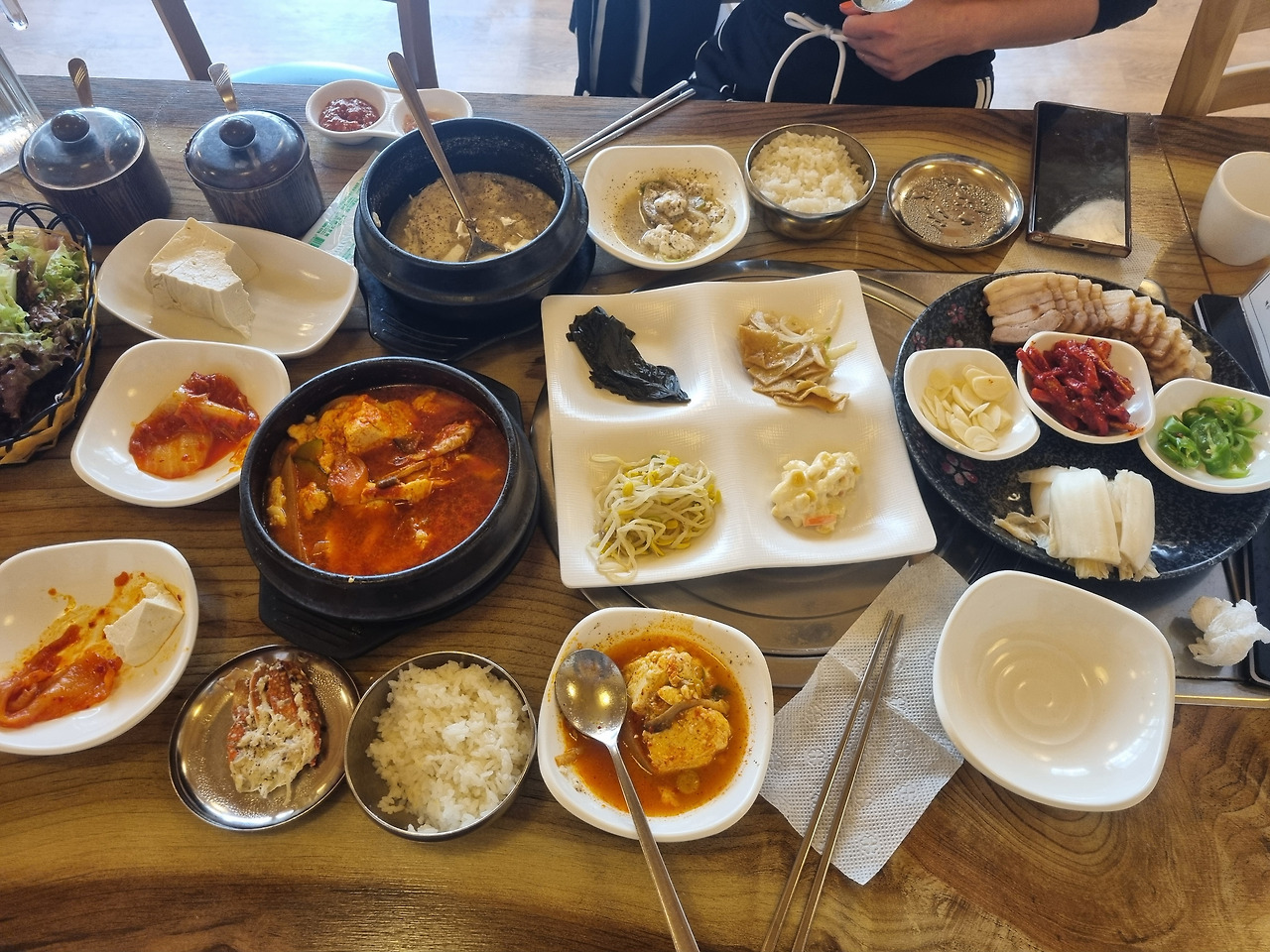 1시 반. 많이 걸었으니 슬슬 배가 고파진다. 차를 타고 이동, 삼대째손두부에 갔다. 사실 1년에 18회 당진 가는 사람에게 물어 꽤 많은 식당 리스트를 받았는데(언니 미안 ㅜ.ㅜ) 건강상의 이유로 저염식을 하는 내게 당기는 곳이 없었다. 복남이네꽁당보리밥집은 훌륭하지만 작년에 가본 관계로 두부집으로 고고. 순두부 정식을 배불리 먹었다. 시원하게 내주는 콩물이 정말 별미였다. 순두부는 들깨순두부로!