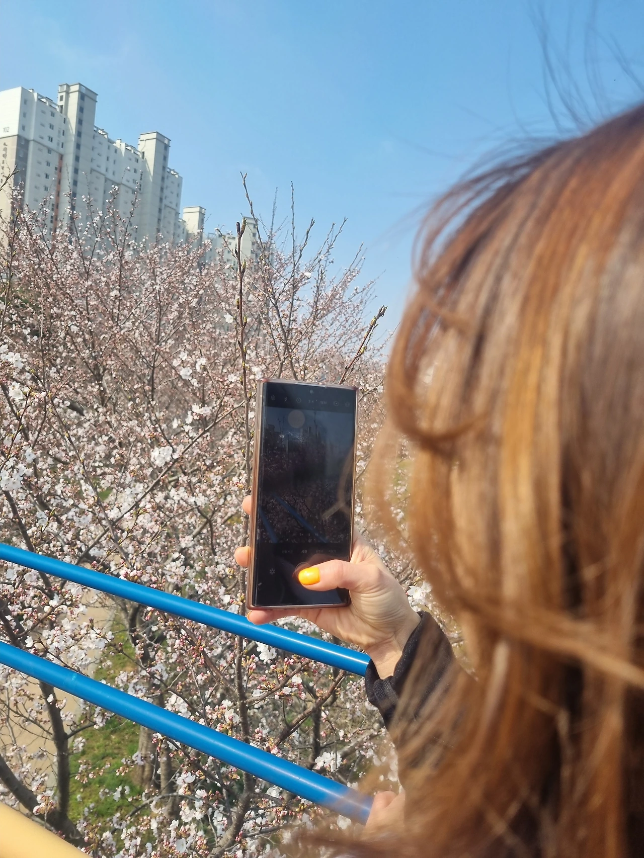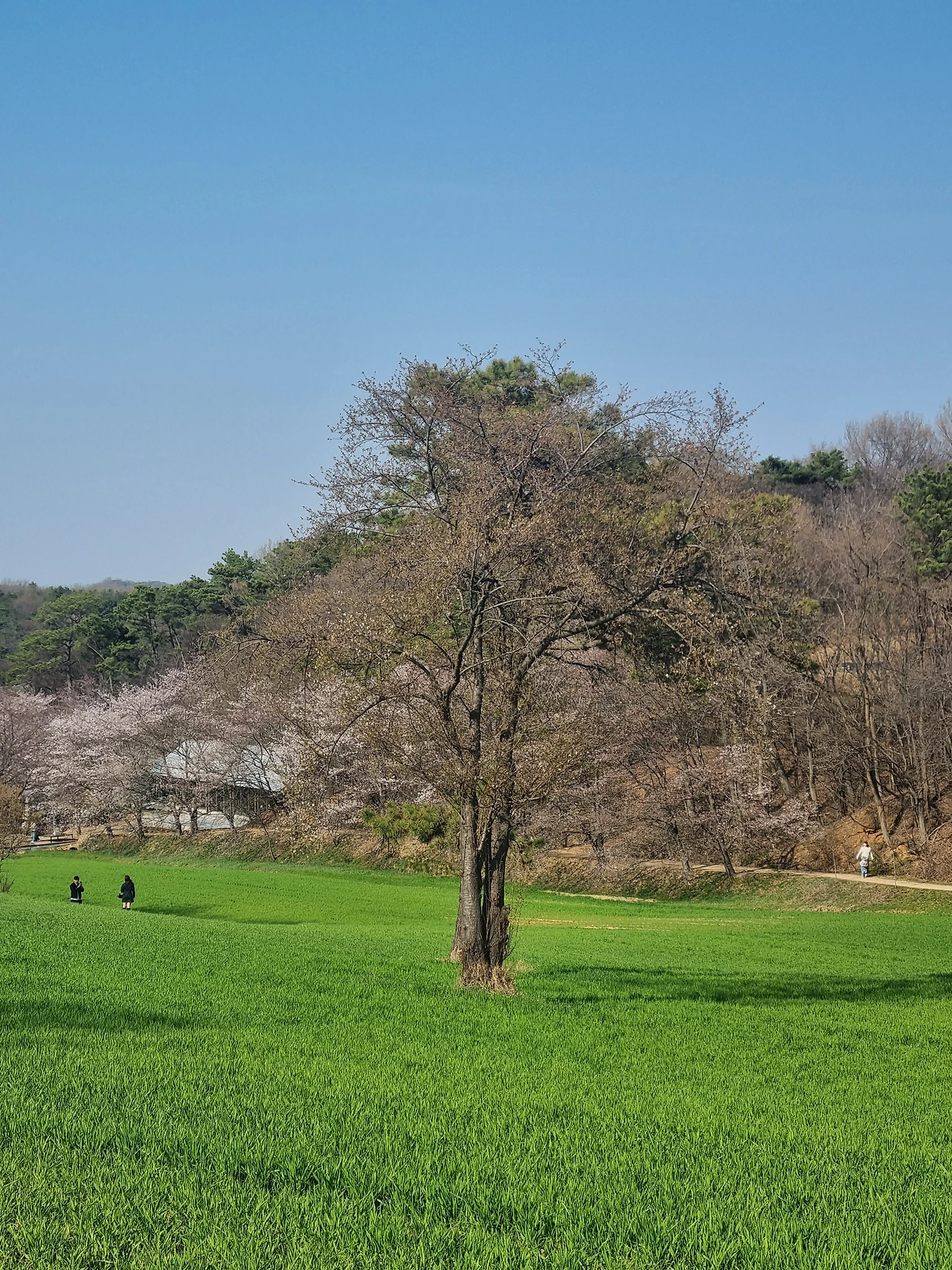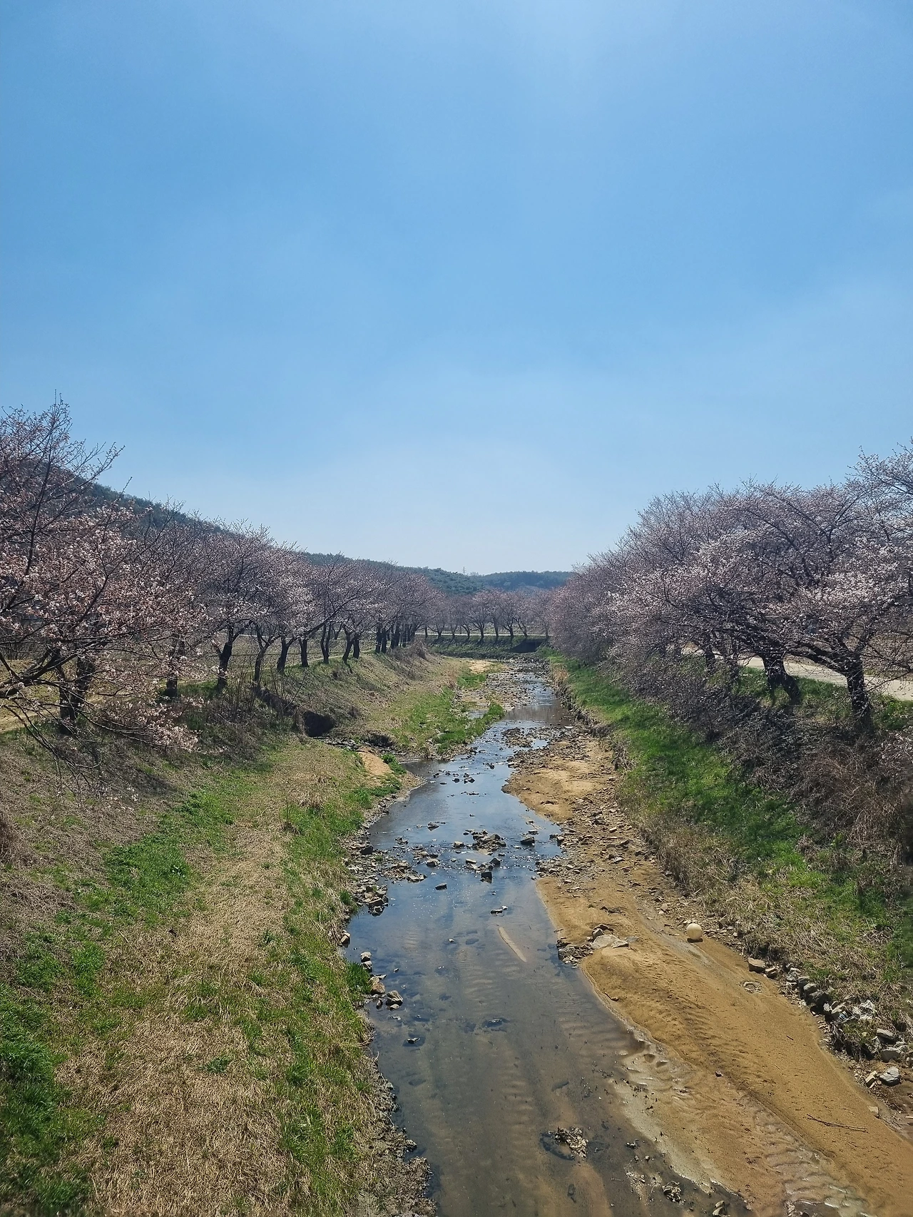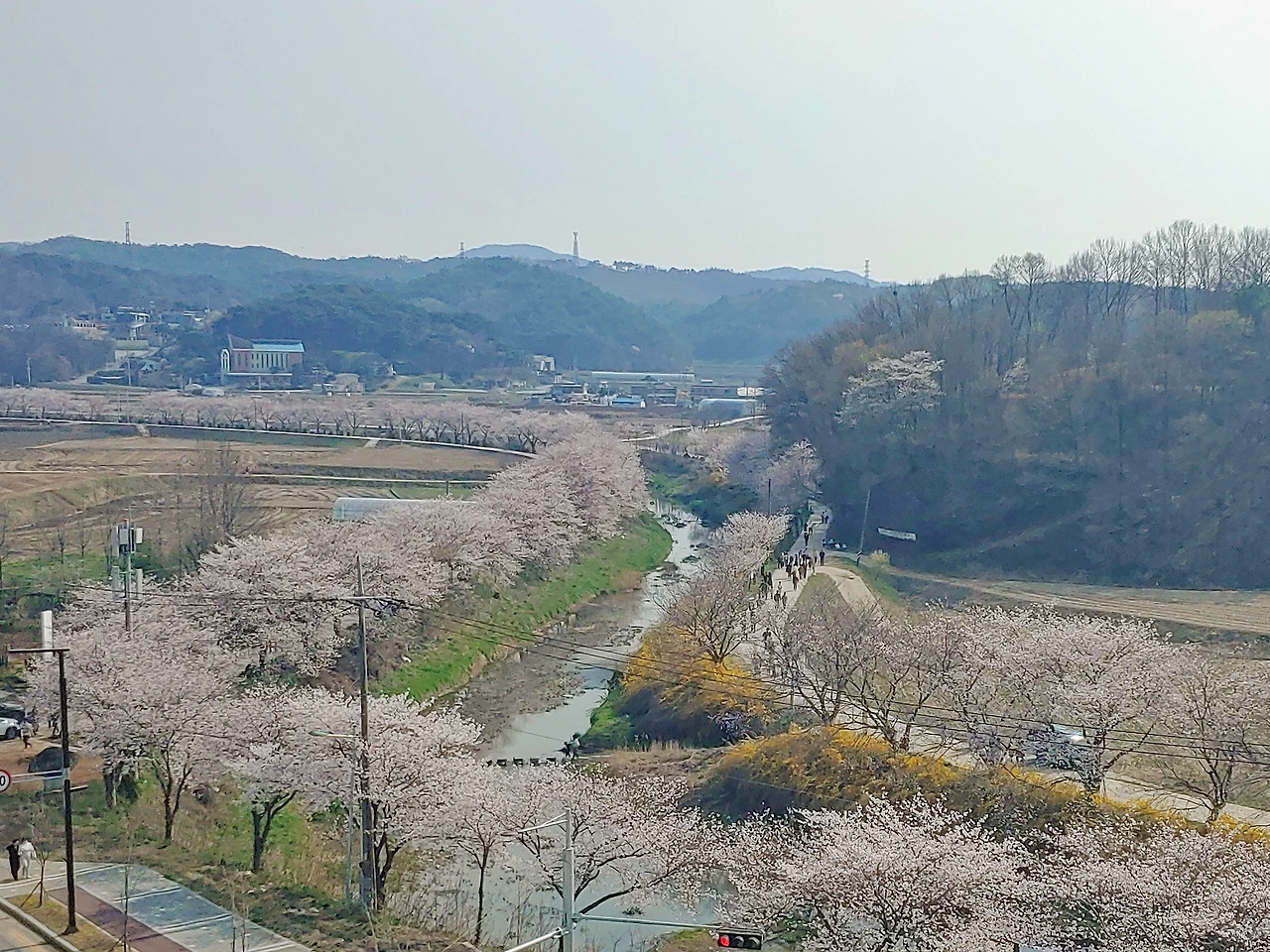에세이 쓰기 강의 끝낸 배지영 언니와 복남이네꽁당보리밥집에서 점심을 먹고 버들수변공원을 산책했다. 그리고 브레댄코 당진수청점에 가서 커피를 마셨다. 그때 환상적인 벚꽃길을 보고 그 길을 걷고 싶었다. 뛰어보고 싶었다. 늦은 오후 당진시외버스터미널에서 버스를 타고 집으로 왔다.