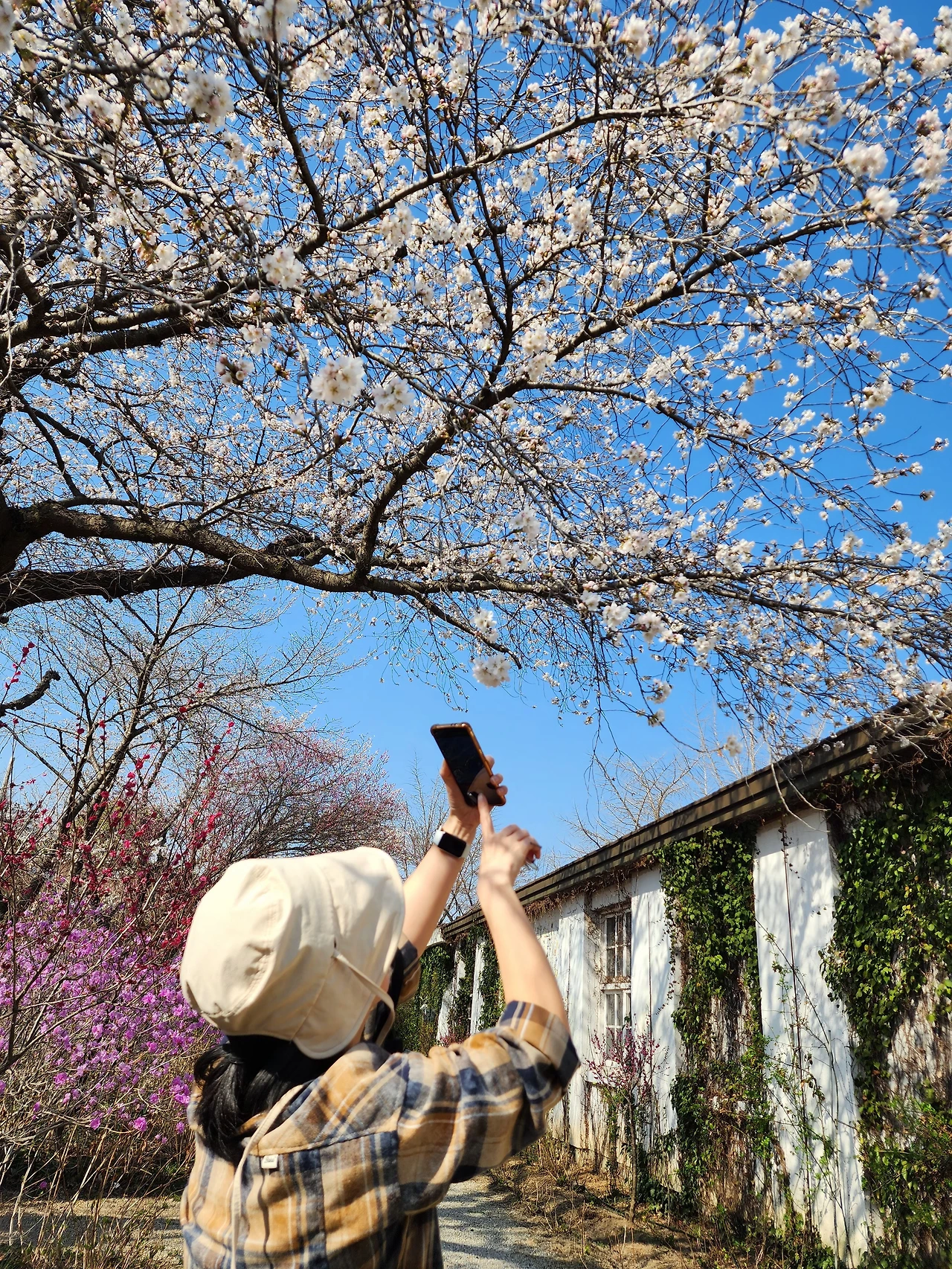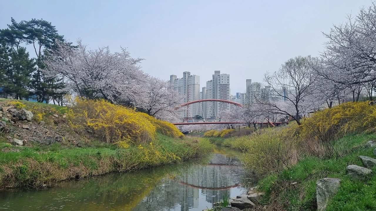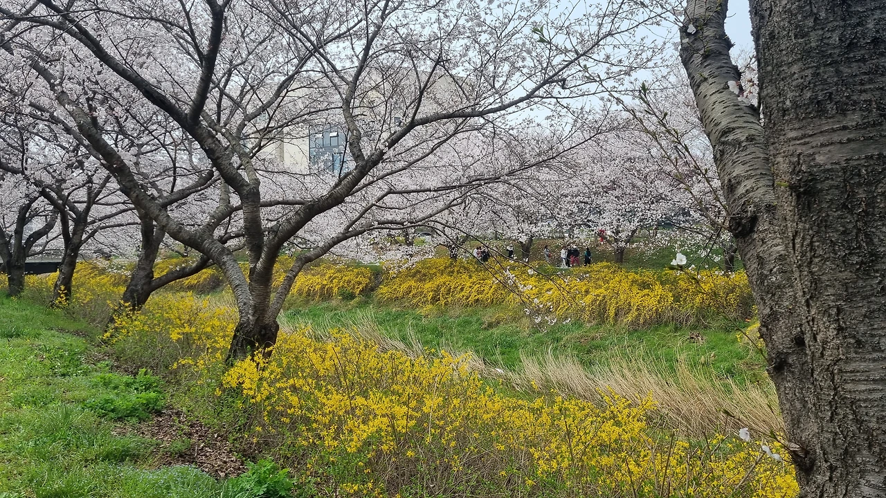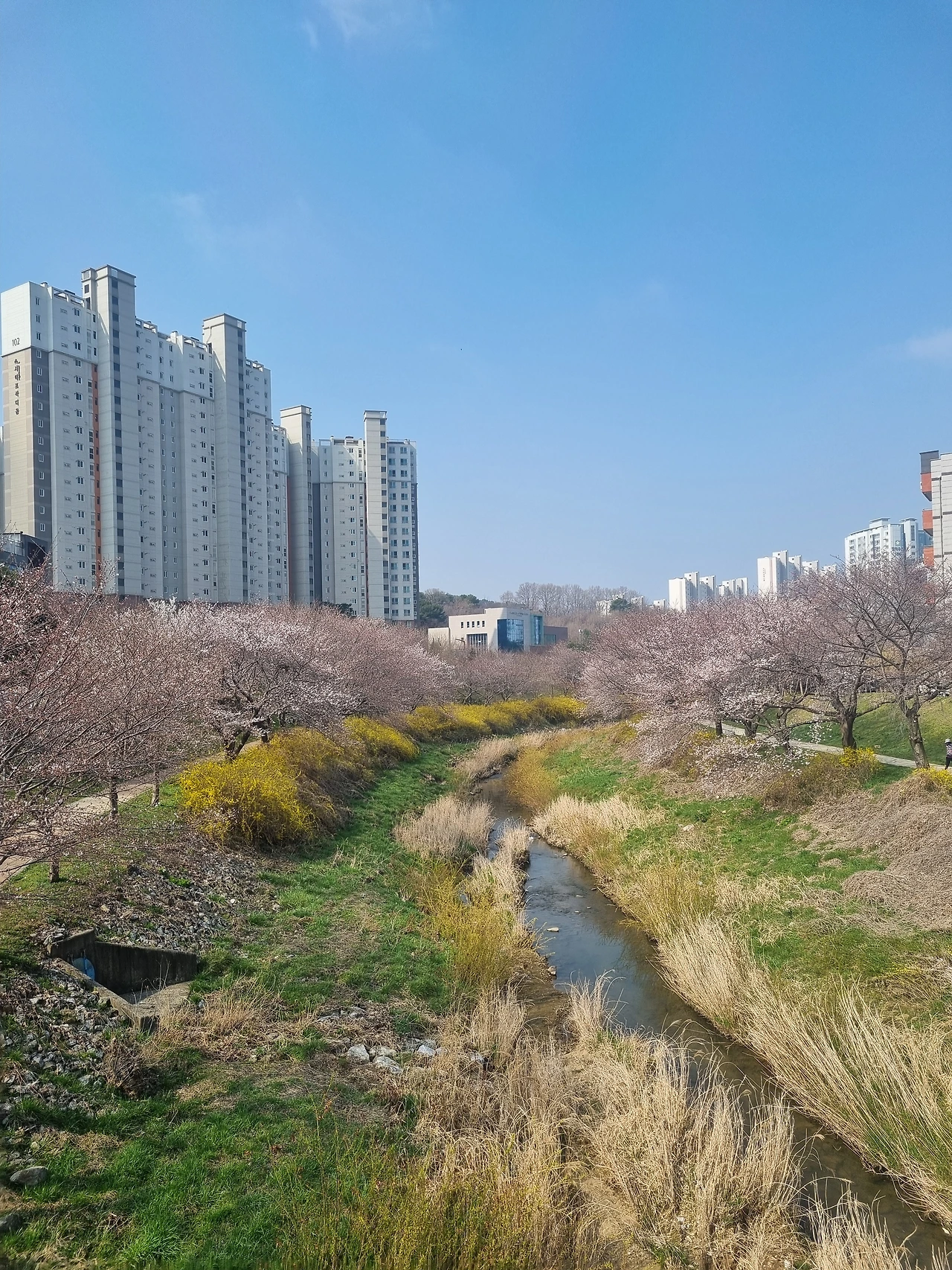 9시 30분 버들수변공원. 원래 목적지 더 뿌리 베이커리 카페는 10시에 오픈, 그러나 우리가 도착한 시간은 9시 30분. 가볍게 버들수변공원을 걸었다. 연두연두한 새싹들과 노란 개나리 그리고 흰색 벚꽃이 여전히 아름다운 곳이었다. 벚꽃은 전부 피진 않았지만, 일부 만개한 꽃들 사이로는 사라졌다는 벌들이 죄다 모여있는 것 같았다.