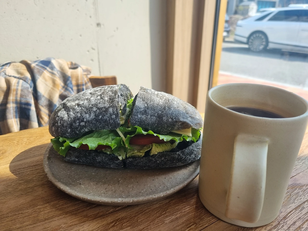 10시 더 뿌리 베이커리 카페. 커피와 샌드위치 주문. 다 먹고 추가 주문하고 빵도 사갈 만큼 맛있었다. 커피 맛도 분위기도 좋고. 두 번 방문 의사 있다.