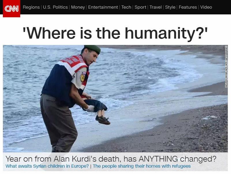 쿠르디는 무장단체 IS의 탄압을 피해 소형 보트를 타고 지중해를 건너다 보트가 전복되어 목숨을 잃었다. 당시 이 사진 한 장이 주는 충격은 대단했다. 난민을 남의 나라 일로만 여긴 나조차 그게 뭔지 알아보고 속울음을 삼켜야 했으니까.