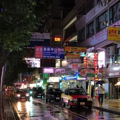 구룡반도에 도착한지 얼마 되지 않아 비가 쏟아졌다. 길가에서 촌스러운 카모플라쥬 무늬의 삼단 우산을 샀다. 비싸게 준 거 같다. 나일론 천이 어찌나 얇은지. 그래도 신났다. 비오는 침사추이 거리는 6년 전에도 겪어본 적 없었으니까. 고개를 숙이니 화려한 간판 조명이 젖은 땅에 반사되어 촉촉해 보였다. 중국어(역시 광동어일까?)와 신호등 소리가 온통 귀를 때렸다. 홍콩의 신호등은 한국과 달리 하루 종일 댕, 댕, 하는 소리를 낸다. 빨간불일 땐 느긋한 박자로, 초록불일 땐 도도도 빠른 박자로. 귀에 얼얼한 잔상이 남는다.